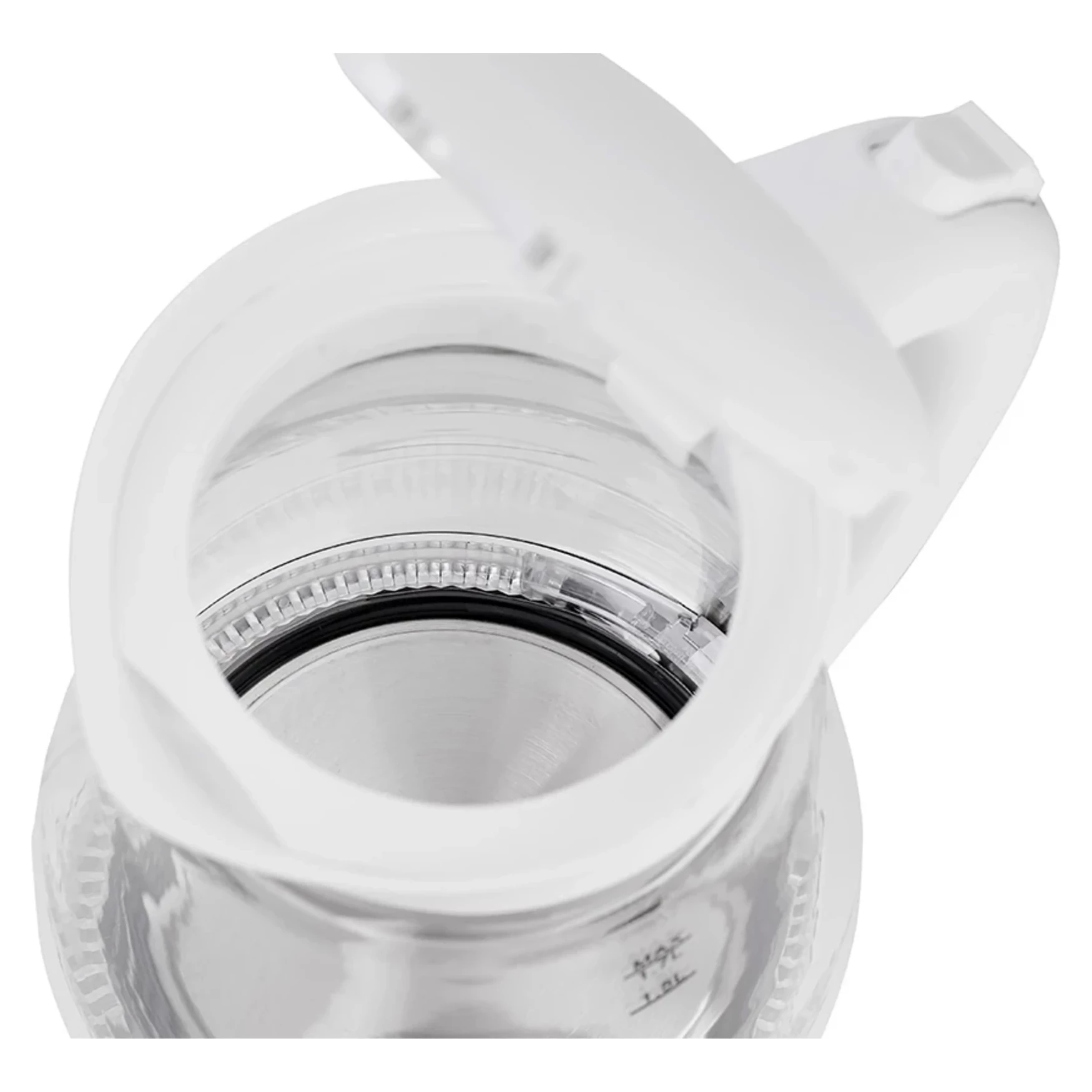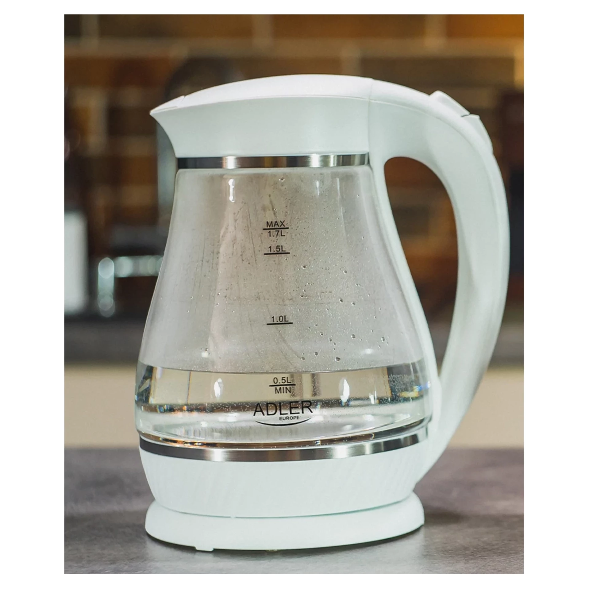 Veľká elektrická rodinná kanvica v tradičnom tvare džbánu v modernom prevedení. Vďaka výkonu 2200 W umožňuje naraz uvariť vodu pre 6-7 osôb. Kanvica je vybavená jasným ukazovateľom hladiny vody a automatickým vypnutím, takže sa po zovretí vody vypne. Ochrana proti zovretiu nasucho zabraňuje zapnutiu prázdnej kanvice, čo šetrí energiu a zvyšuje bezpečnosť používateľa. Pre pohodlie používateľa je kanvica vybavená otočnou základňou o 360 stupňov a plochým dnom. Biely a neagresívny dizajn. Umožňuje uvariť až 1,7 l vody. Vybavená vykurovacím telesom z vysoko kvalitnej nehrdzavejúcej ocele a kontrolkou informujúcou o zovretí vody.