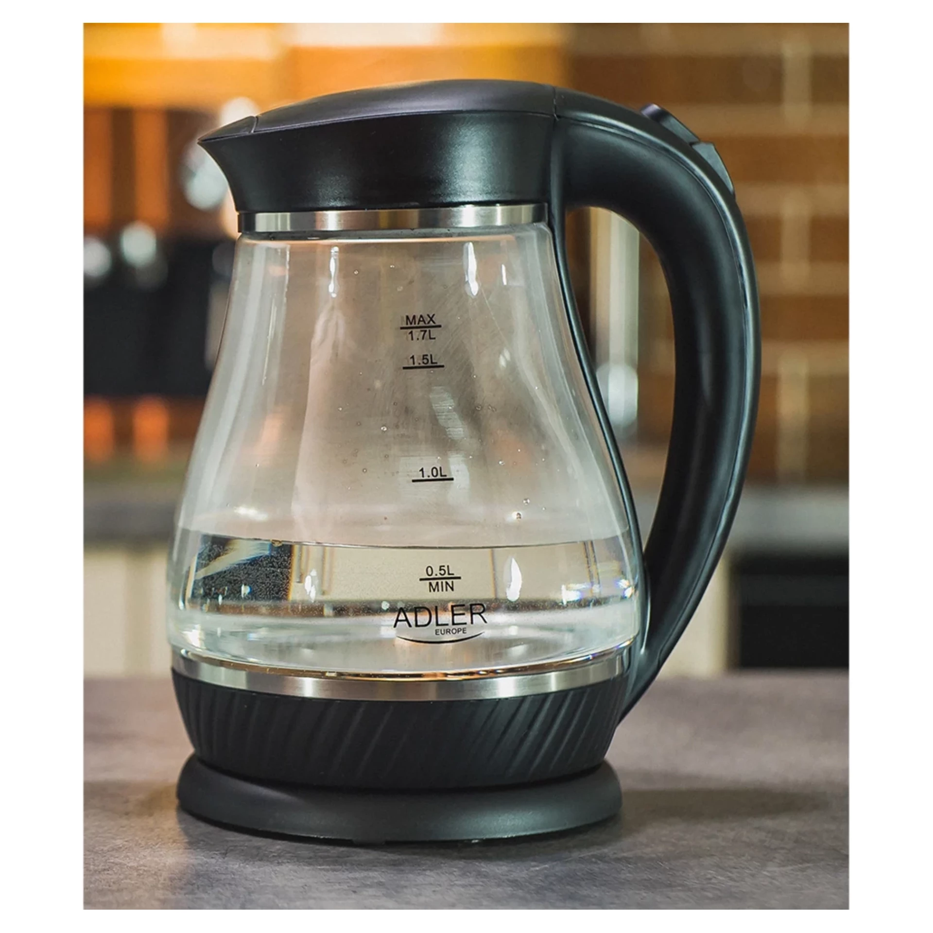 Veľká elektrická rodinná kanvica v tradičnom tvare džbánu v modernom prevedení. Vďaka výkonu 2200 W umožňuje naraz uvariť vodu pre 6-7 osôb. Kanvica je vybavená jasným ukazovateľom hladiny vody a automatickým vypnutím, takže sa po zovretí vody vypne. Ochrana protiPokračovať