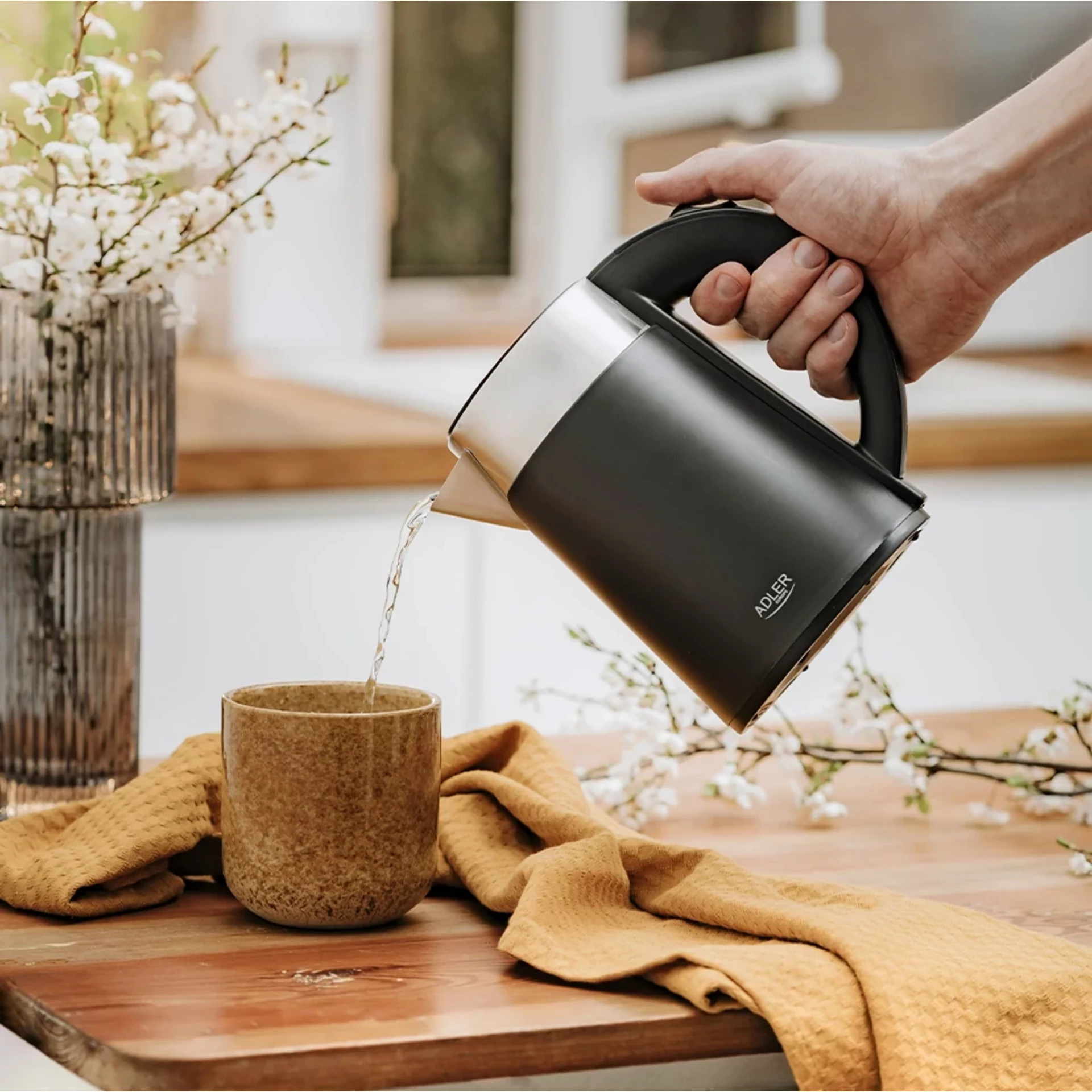 Kanvica Adler 1372 s objemom 0,6 litra je malé, ale veľmi praktické zariadenie na prípravu horúcej vody. Dá sa úspešne použiť na prípravu jednej alebo dvoch šálok čaju alebo kávy. Vďaka malým rozmerom zaberá táto kanvica na kuchynskej linke málo miesta, čo môže byť výhodné najmä v menších kuchyniach alebo v prípade nedostatku miesta na uloženie väčších spotrebičov.