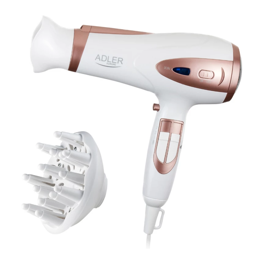 Fén AD 2248 s ionizátorom * je voľbou mimoriadne náročných ľudí, ktorým záleží na ich vlasoch a ich krásnom vzhľade. Fén je vybavený ION spínačom s kontrolkou (po zapnutí sa modrá farba zmení na zelenú). Okrem toho má fén nezávislú reguláciu rýchlosti vzduchu aj teploty vrátane tlačidla Cold Shoot pre finálnu fixáciu účesu. Fén má odnímateľný filter prívodu vzduchu. Sada obsahuje koncentrátor a difuzér. Moderný dizajn.