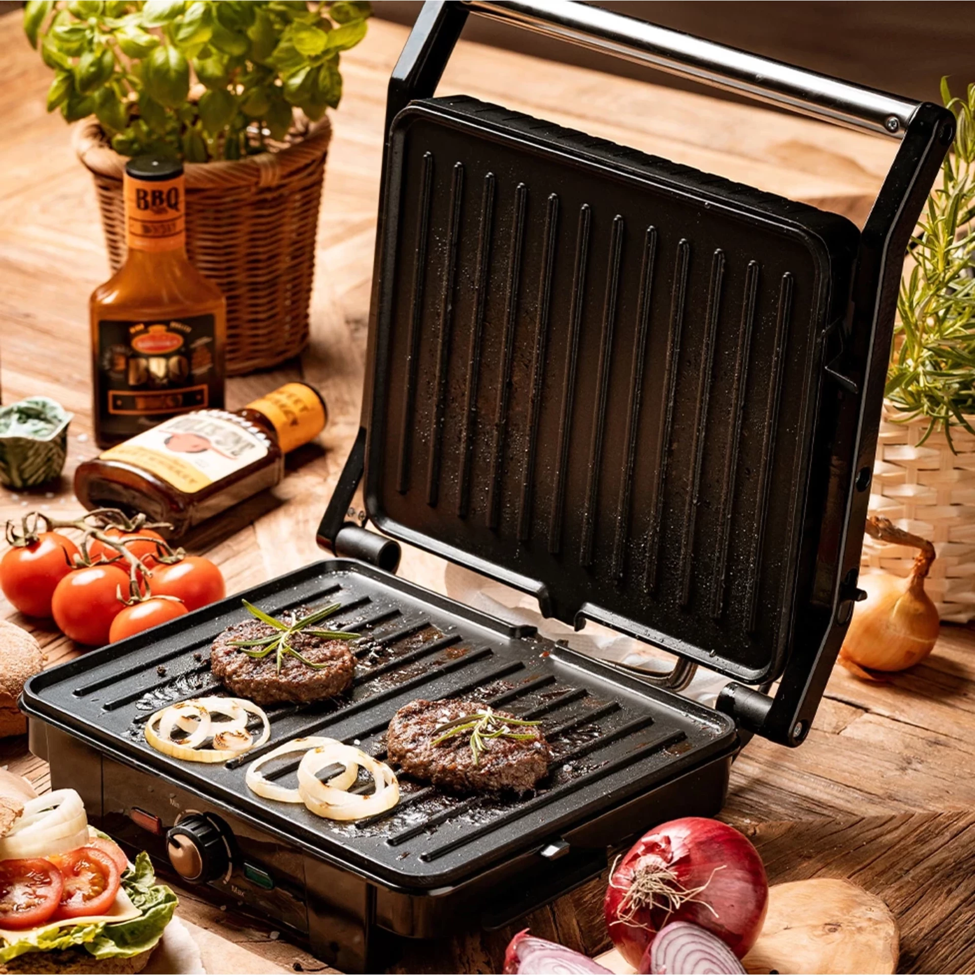 Elektrický gril Adler AD 3051 s maximálnym výkonom 2800 W vám umožní pripraviť širokú škálu teplých jedál – od hamburgerov, cez steaky, kuracie mäso a iné mäso, až po grilovaný syr a zeleninu. Výhrevné dosky sú pokryté teflónovým povlakom, vďakaPokračovať