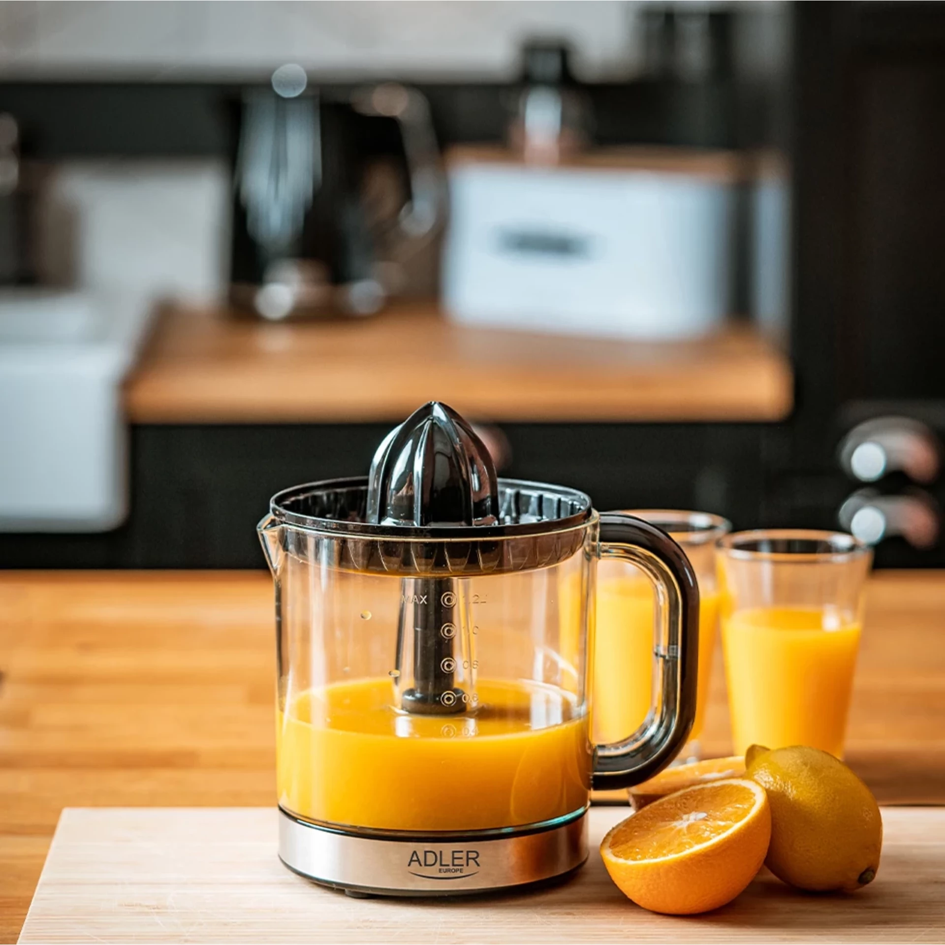 Pekný citrusovač s príkonom 40W. Umožňuje rýchlo a efektívne pripraviť čerstvú šťavu z citrónov, pomarančov alebo grapefruitov. Sito umiestnené na nádobe zastaví dužinu a kôstky a bráni im dostať sa k šťave. Vďaka pravému a ľavému otáčaniu bude z ovocia extrahovaná každá kvapka. Veľmi praktickým a pohodlným riešením je, že sa prístroj automaticky zapne pri tlaku a vypne sa pri vybratí ovocia. Bezpečnostný kryt zabraňuje striekaniu šťavy na stôl alebo do kuchyne. Citrusový odšťavovač AD 4012 má dva lisovacie kužele, ktoré zodpovedajú ovociu rôznych priemerov. Kapacita 1200 ml umožňuje pripraviť šťavu pre celú rodinu naraz. Priestor pre napájací kábel.