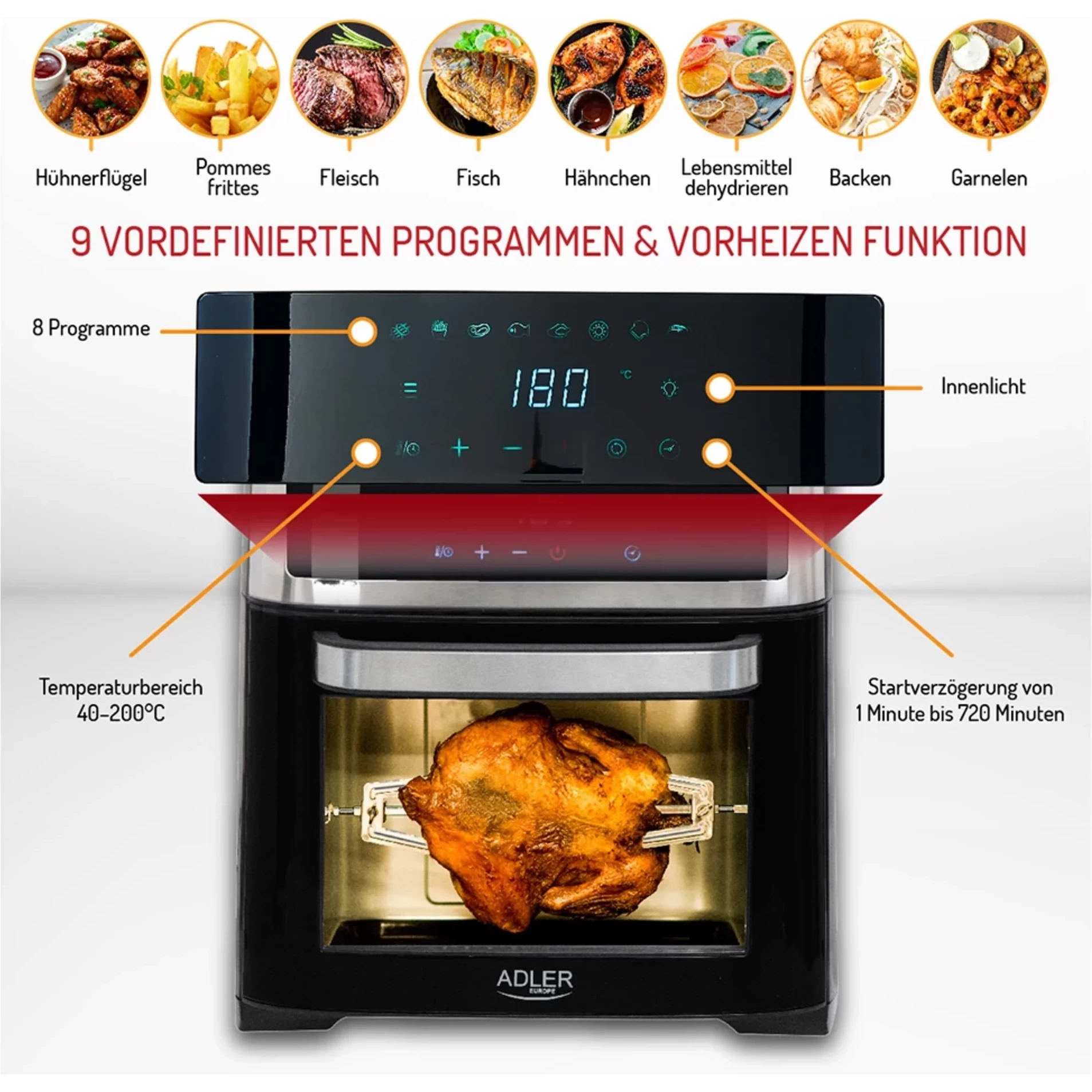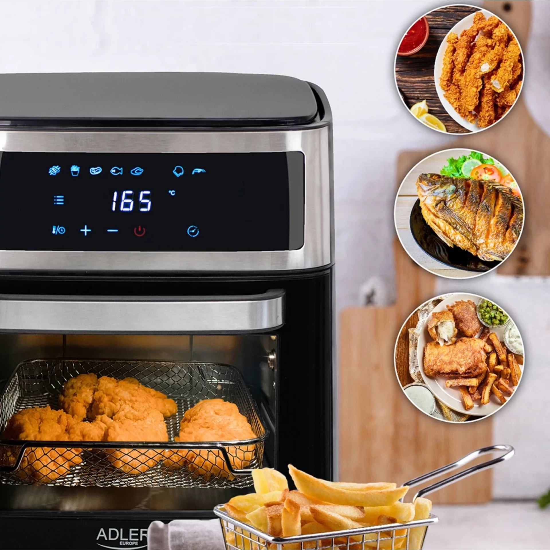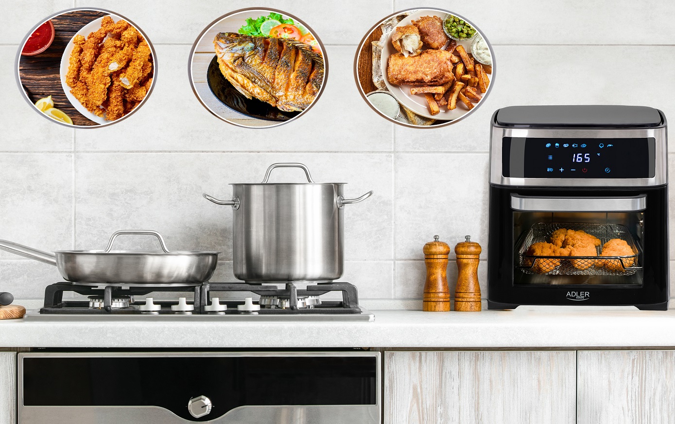 Záujem o varenie bez tuku každým rokom rastie. Vďaka redukcii oleja znížime kalorický obsah jedál. Ak chcete niečo zmeniť vo svojom štýle varenia a chcete zaviesť zdravé jedlá pre celú rodinu, oplatí sa investovať do fritézy Airfryer Oven 8v1 ADLER AD 6309. Nemusíte sa báť, že mäso alebo zelenina v nej upečené budú bez chuti. Je to cenná výbava, ktorá uľahčí rýchle a zdravé varenie.
