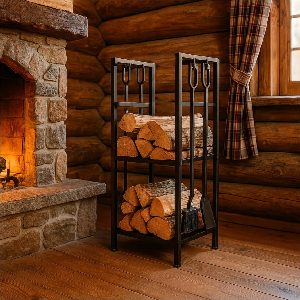 Odolné a praktické riešenie na uskladnenie palivového dreva na vnútorné aj vonkajšie použitie na terase.