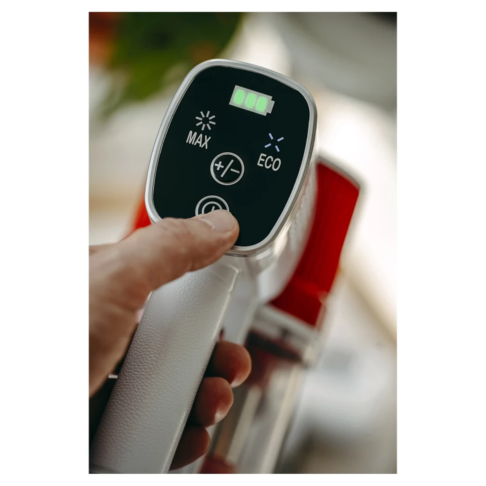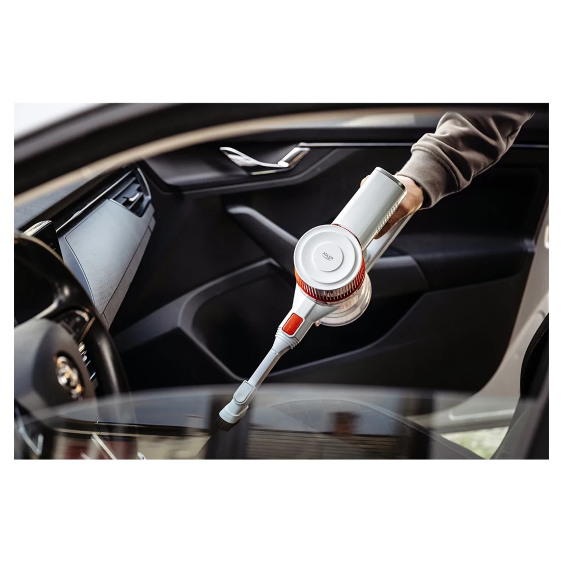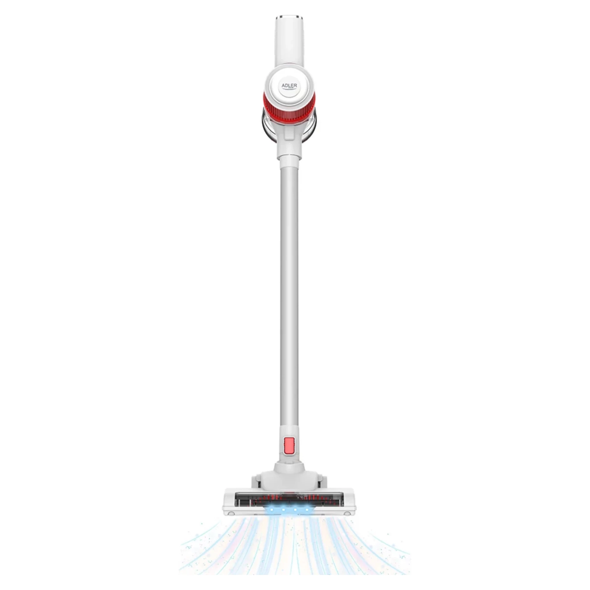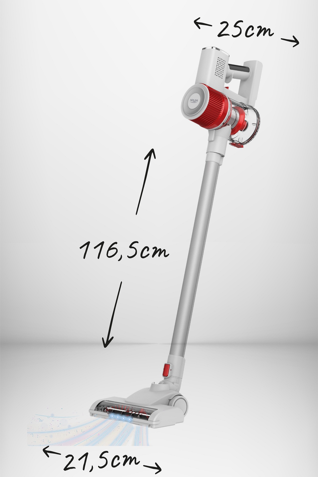 Vertikálny vysávač ADLER AD 7051 je profesionálne, vysokovýkonné zariadenie, ideálne na pohodlné čistenie mnohých miestností a interiérov áut. Maximálny výkon 300 W s možnosťou dvojstupňového nastavenia (Max/Eco), ktorý zaisťuje primeraný sací výkon (11,5/7 Kpa) pre rôzne potreby čistenia. Batéria vydrží až 18 minút pri maximálnom nastavení alebo až 30 minút v eko režime, takže upratovanie dokončíte bez nutnosti dobíjania. Hlučnosť iba 70 dB vám umožní upratovať bez rušenia vášho domova. Kefa s LED osvetlením uľahčuje čistenie na ťažko dostupných miestach a zaisťuje viditeľnosť v tmavých kútoch. Oceľová rúrka zaisťuje odolnosť a zároveň ľahkosť, čo uľahčuje manévrovanie s vysávačom. Systém cyklónového filtra účinne oddeľuje nečistoty a prach a zaisťuje tak čistý vzduch vyfukovaný z vysávača. Štrbinová kefa 2 v 1 umožňuje dôkladné čistenie aj na tých najťažšie dostupných miestach. Priložený vešiak na vysávač zaisťuje jednoduché a pohodlné uloženie prístroja.