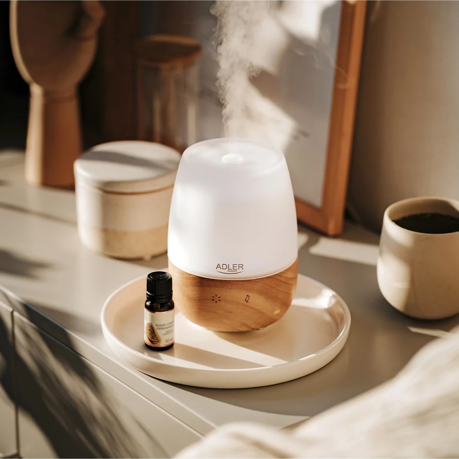 Ultrazvukový aroma difuzér USB 3v1 ADLER AD 7967 umožňuje rýchlu a efektívnu distribúciu vône, ktorej nosičom sú drvené častice vody zmiešané s esenciálnym olejom. Ultrazvukový aroma difuzér USB 3v1 je skvelou alternatívou k starším modelom tohto typu zariadení a vonným sviečkam, ktoré nie každý dokáže použiť. Kapacita nádržky na vodu je 130 ml, vďaka čomu je účinnosť zvlhčovania miestnosti do 25 m² približne 8 – 25 ml/h v závislosti od zvoleného nastavenia. Ak máte radi farebné svetlo a využívate farebnú terapiu, náš difuzér vás možno prekvapí! Vyberte si zo siedmich farieb alebo si ich všetky nastavte tak, aby sa striedali. Napájací kábel má dĺžku 180 cm, vďaka čomu môžete zariadenie jednoducho umiestniť na preferované miesto. Jedno naplnenie vodou umožňuje 4 hodiny prevádzky. Funkcia AUTO-OFF automaticky vypne zariadenie, keď v nádržke nie je voda.