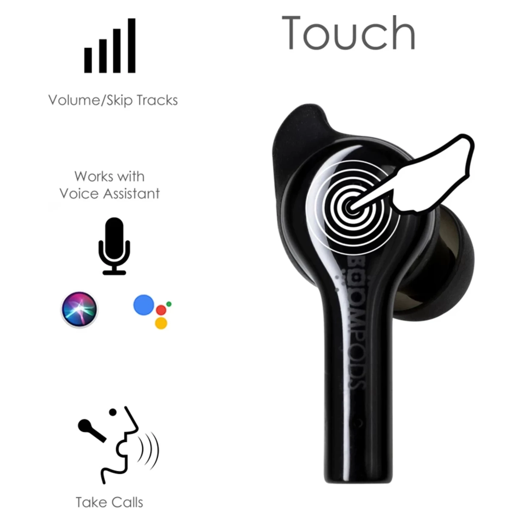 Aby sme zostali verní čistým líniám basovej série, rozhodli sme sa pre dotykové ovládanie, ktoré umožňuje, aby elegantný dizajn nezobrazoval žiadne viditeľné tlačidlá. Táto inovácia vám umožňuje ovládať slúchadlá jednoduchými dotykovými gestami, vďaka čomu je ovládanie šetrnejšie k vašim ušiam. Môžete ovládať hlasitosť, preskakovať skladby, prijímať hovory a aktivovať hlasového asistenta telefónu