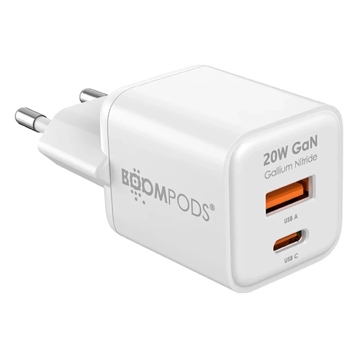 Rýchle nabíjanie pomocou sieťovej nabíjačky Boompods 20 W USB-C, ktorá poskytuje ultrarýchle nabíjanie zariadení s podporou USB-C PD. Rýchle nabite iPhone 8 alebo novší z 0 – 50 % za 30 minút.