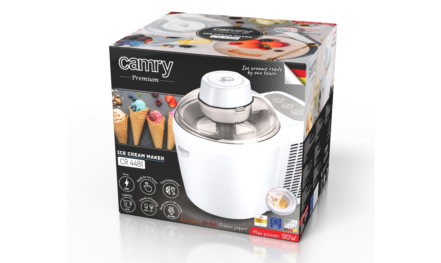 Príprava zmrzliny je zvyčajne spojená s pomerne dlhým a komplikovaným procesom. Dnes sa môžete prestať obávať, či dostanete zmrzlinu, akú chcete. Zmrzlinovač Camry CR 4481 je termoelektrický stroj, čo znamená, že nie je potrebné výrobky predtým predchladzovať. Stačí nasypať alebo nakvapkať vybrané ingrediencie, stlačiť jedno tlačidlo a zmrzlina môže byť hotová aj za 30 minút.