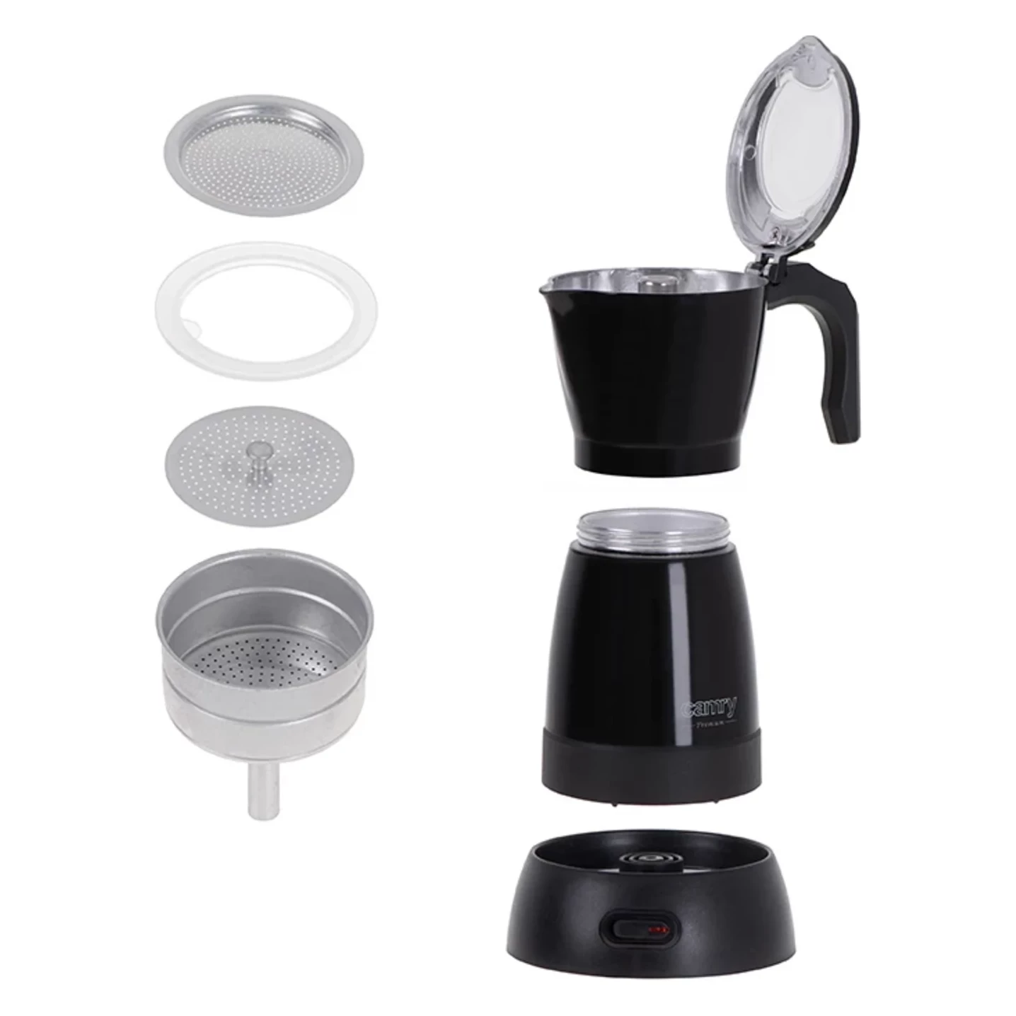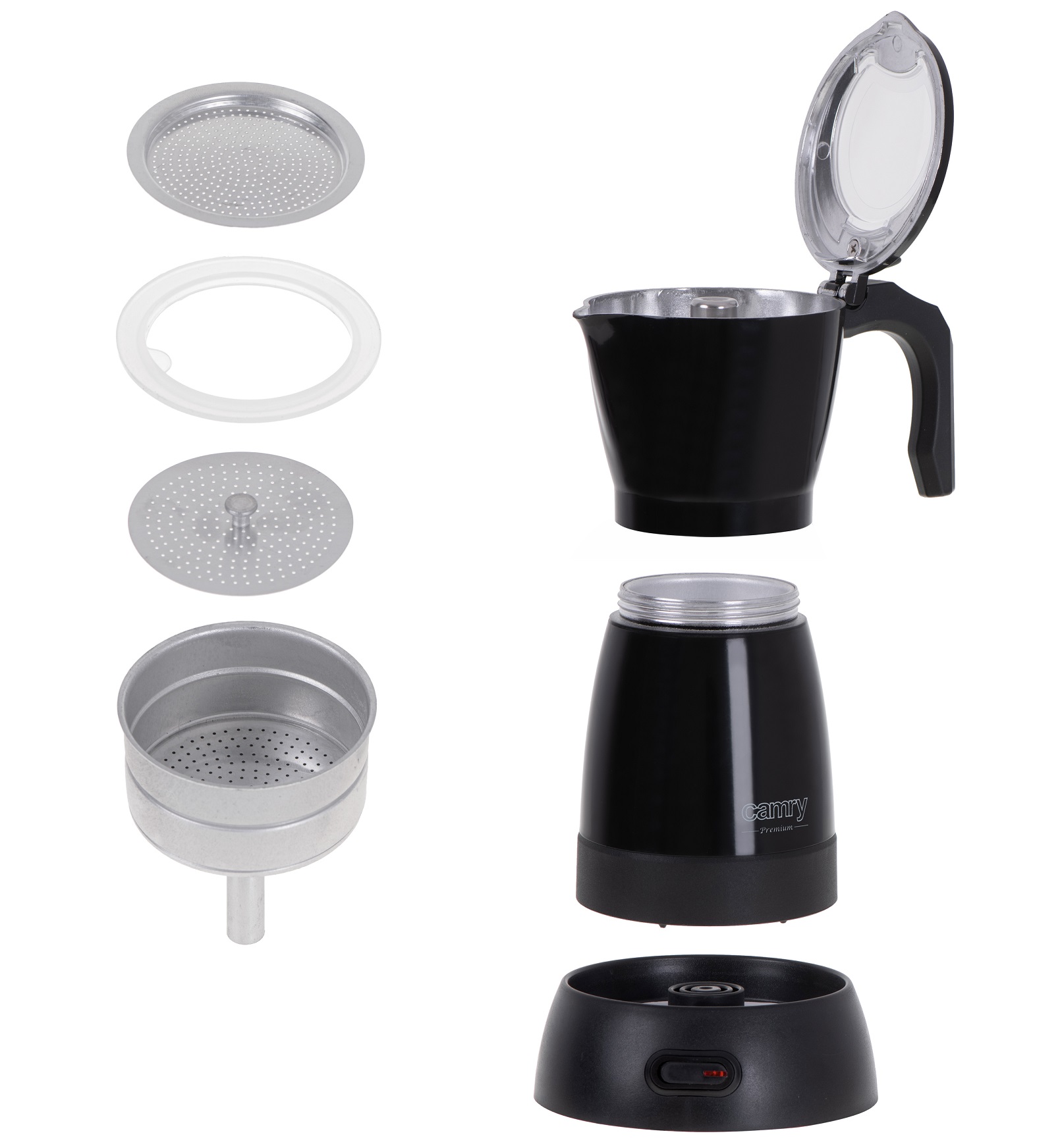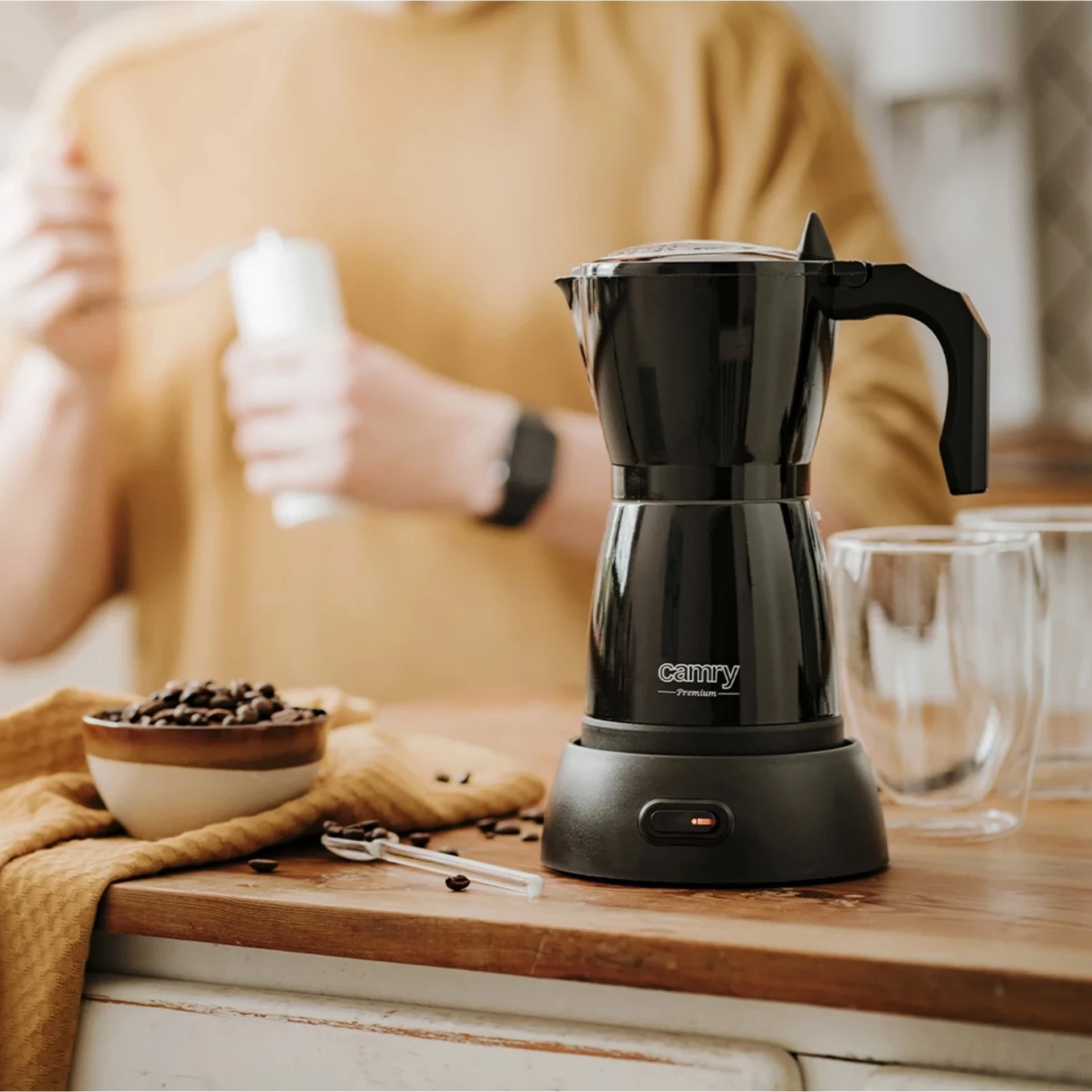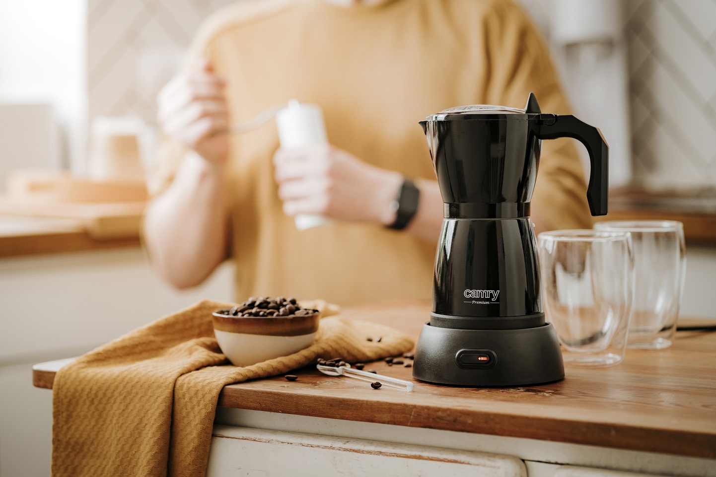 Elektrický kávovar Camry CR 4415 Moka je ideálnym produktom pre každého milovníka kávy. Určite poteší aj tých, ktorí sa nechcú rozlúčiť so svojím aromatickým nápojom na cestách. Chceli by ste vyskúšať kávovar, ktorý pripraví kávu ako vaše obľúbené espresso, ale v oveľa menšom priestore? Hľadáte praktický darček pre blízkeho človeka? Potom je tento kávovar určený práve pre vás.