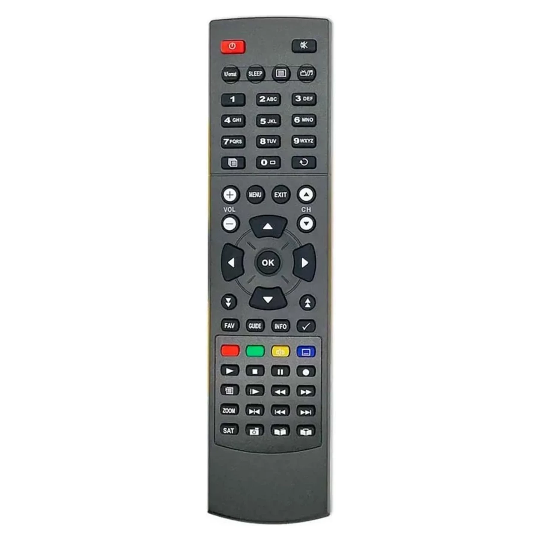 Kvalitné diaľkové ovládanie pre oblúbený satelitný prijímač Gosat 7060HDi. Diaľkové ovládanie je plne kompatibilné s modelmi Gosat 7010HDi, Gosat 7050, Gosat 7056HDi, Gosat 7060HDi, Gosat GS6050HDv, Gosat 7070PVRi, Gosat GS7075COMBOi, Sunssat S100, Sunsat S200, Sunsat S300, Optibox Zebra a Optibox Zebra mini / pozor nie je určený pre Optibox Zebra SE /. Je vybavený tlačidlami pre ovládanie PVR funkcií. Diaľkový ovládač je napájaný dvoma batériami typu AAA, doporučujeme alkalické batérie. Ovládač neobsahuje funkcie ovládania televizora!Pokračovať