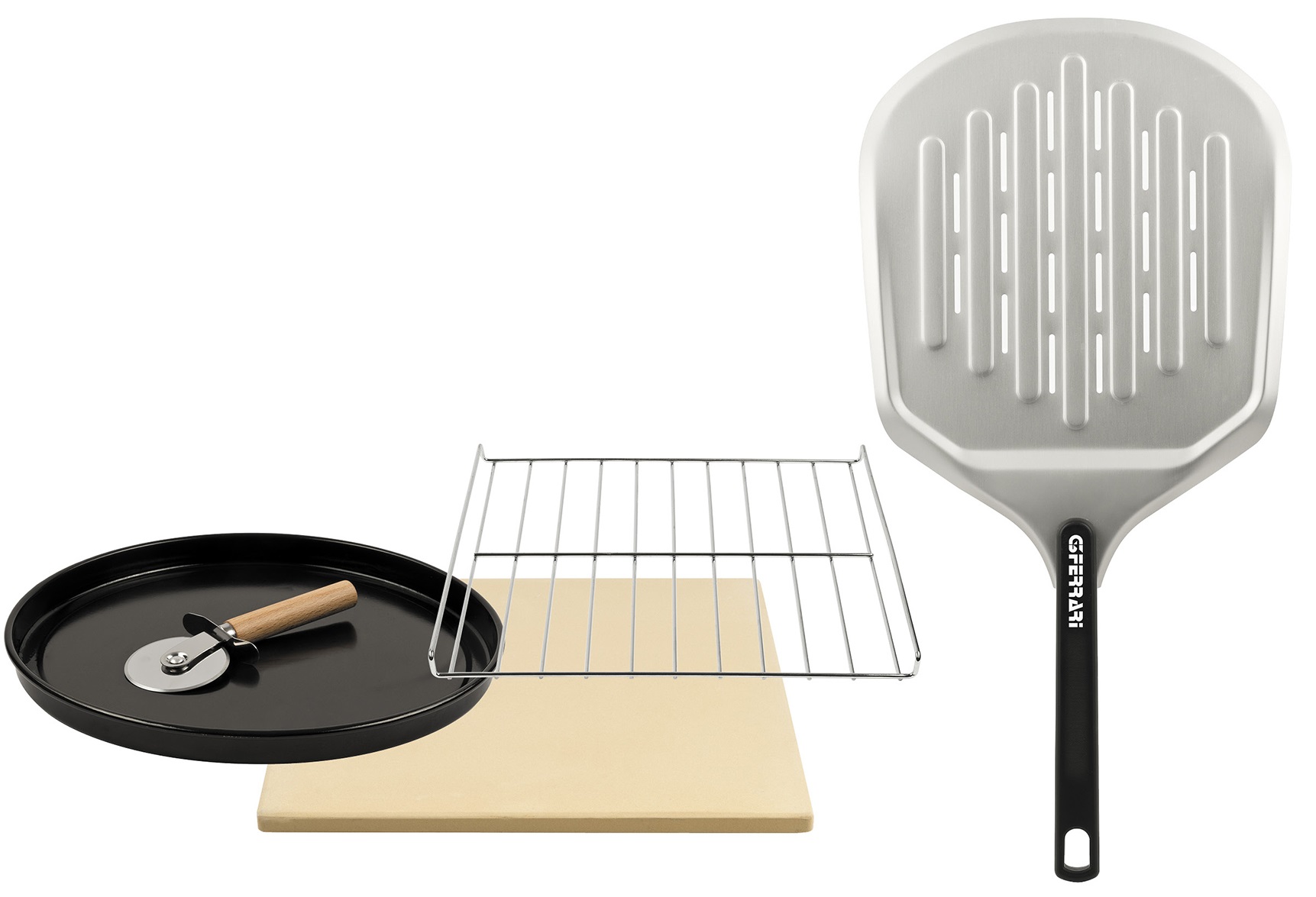 Kompletná súprava: Rozsiahla súprava príslušenstva vrátane žiaruvzdorného kameňa a lopatky na pizzu.