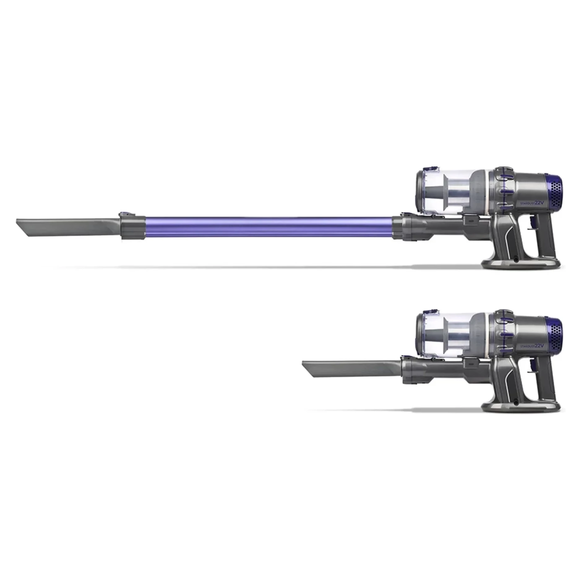 Náš bezdrôtový vysávač Stardust 22V je vybavený výkonnou lítiovou batériou 22,2 V a poskytuje presné a dôkladné vysávanie, ktoré zaručuje skvelý sací výkon a tichú prevádzku (67 dBa). Hlavné telo je ľahké a ľahko sa s ním manipuluje, čo uľahčuje aj to najnáročnejšie čistenie od podlahy až po strop a ľahko sa premení na prenosný vysávač, ktorý splní všetky potreby čistenia vašej domácnosti. Nádoba s objemom 800 ml sa rýchlo a hygienicky vyprázdňuje bez kontaktu s prachom a lítiová batéria zaručuje prevádzkový čas až 40 minút, čo stačí na upratanie celej domácnosti. Súčasťou balenia je: motorizovaná kefa na podlahy a koberce, multifunkčná kefa na čistenie textílií, pohovky, postele, auta a mnoho ďalšieho, hubica, hliníková trubica a držiak na montáž na stenu.