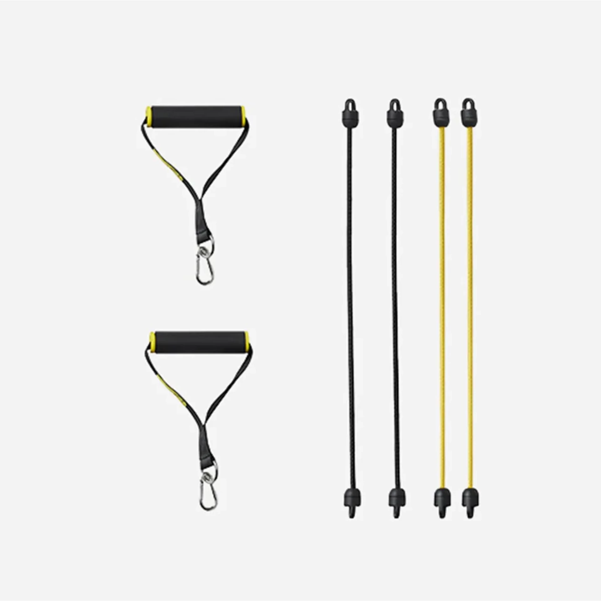 Dve sady odporových pásov s nosnosťou 4,5 kg a 9,7 kg sú inovatívnym spôsobom kombinované tak, aby zabezpečili postupné zvyšovanie hmotnosti o 10,5 kg, 20,4 kg a 29,4 kg. Ľahké až ťažké závažia vás budú sprevádzať počas celej vašej fitness cesty.