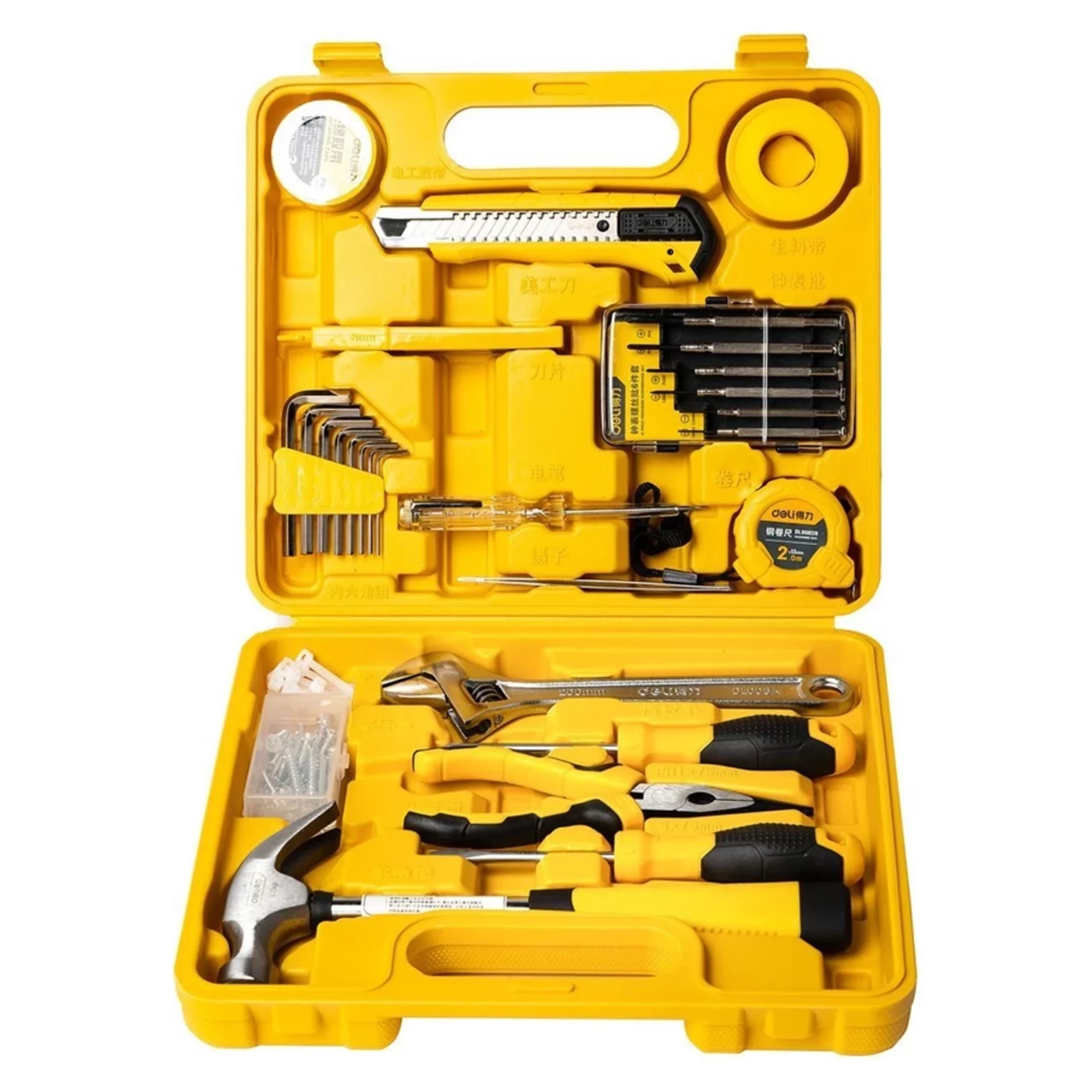 Kufrík s náradím obsahuje 28 nástrojov, ktoré určite využijete. Či už montujete skrinku, kuchynské doplnky alebo lampu, EDL1028J sa Vám bude hodiť pre tieto a podobné situácie. Všetky prvky súpravy sú umiestnené v praktickom kufríku, vďaka čomu bude ich skladovanie jednoduché a pohodlné. Sada obsahuje: nôž s nastaviteľnou dĺžkou čepele, 10 náhradných čepelí, 3 m dlhá vode a ohňovzdorná izolačná páska, 2 m dlhá zvinutá meracia páska, 2 skrutkovače s protišmykovou rukoväťou, kombinovacie kliešte, kladivo z uhlíkovej ocele, nastaviteľný kľúč (8″ ) s chrómovou povrchovou úpravou, ohňovzdornú teflónovu pásku, užahovacie pásky, súpravu 6 ks poniklovaných šesťhranných kľúčov, pinzetu z nehrdzavejúcej ocele a testerom napätia odolným voči korózii pre zásuvky od 100-500V.Pokračovať