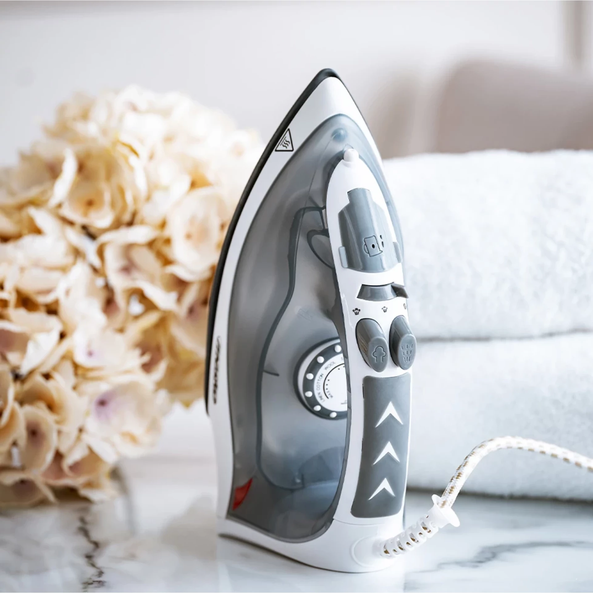 Naparovacia žehlička Mesko 5037 v univerzálnej sivej farbe. Pod elegantným puzdrom sa ukrýva skutočne silný výkon 2800 W. Toto moderné zariadenie s keramickou základňou umožňuje žehlenie vertikálne. Vďaka keramickej ploche sa ľahko kĺže po povrchu materiálu, čo zvyšuje pohodlie žehliča. Keramický povrch žehliacej plochy je odolný voči poškriabaniu, takže sa nemusíte báť žehlenia okolo gombíkov alebo zipsov. Použitie silného parného rázu vám umožní zbaviť sa aj tých najotravnejších záhybov. Nádržka na vodu má objem 170 ml, takže vystačí na vyžehlenie oblečenia celej rodiny!