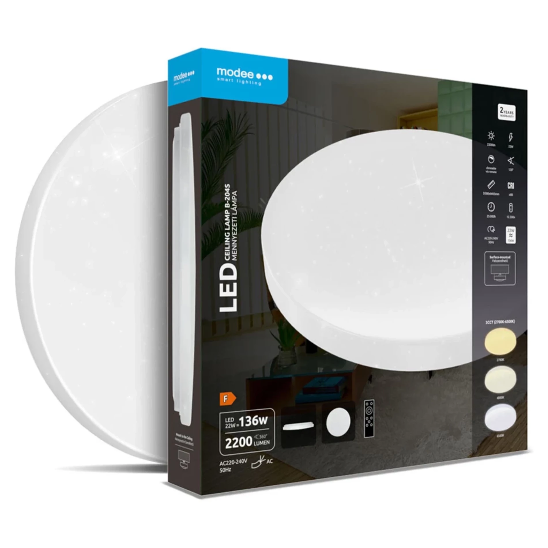 Stropné svietidlo značky Modee vhodne doplní a rozsvieti každú miestnosť vo vašom dome. Súčasťou je aj diaľkové ovládanie, ktoré vám umožní si prispôsobiť jas podľa vasich predstáv a nálad.