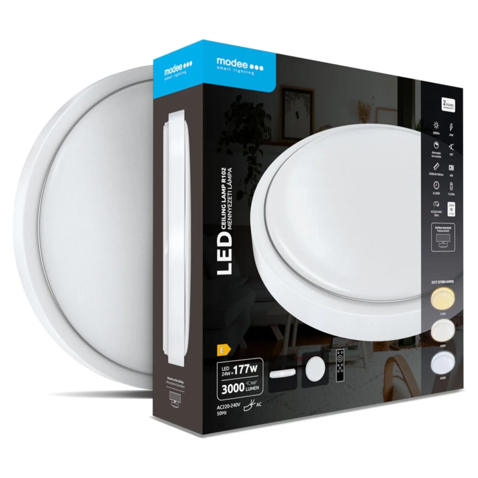 Stropné svietidlo Modee Lighting S-R102 je vysokokvalitné a moderné riešenie osvetlenia, ktoré splní vaše potreby vo vašej domácnosti alebo kancelárii. Toto stropné svietidlo využíva technológiu SMD LED, takže je energeticky úsporné, má dlhú životnosť a zároveň poskytuje vysokokvalitné svetlo. Jeho prvou a najdôležitejšou vlastnosťou je, že dokáže vyprodukovať svetelný výkon 3 000 lúmenov zo svojho výkonu 24 wattov, a to všetko pri poskytovaní homogénneho svetla bez vibrácií jeho šírením pod uhlom 120°. Pomocou priloženého diaľkového ovládača môžete na diaľku nastaviť teplotu farby svetla, ktoré vyžaruje od 2700 do 6500 Kelvinov. To je naozaj užitočné, pretože svetlo lampy môžete prispôsobiť svojej nálade a aktivite. Ak pracujete alebo študujete, je lepšie zvoliť farebnú teplotu s chladnejším tónom (4000-6500K), čo vám pomôže zostať ostražitejší, ale na relaxáciu alebo večeru odporúčame teplejšie farebné svetlá (pod 4000K). Jeho index podania farieb je >80, čo znamená, že dokáže takmer verne reprodukovať farby objektov vo svojom okolí.