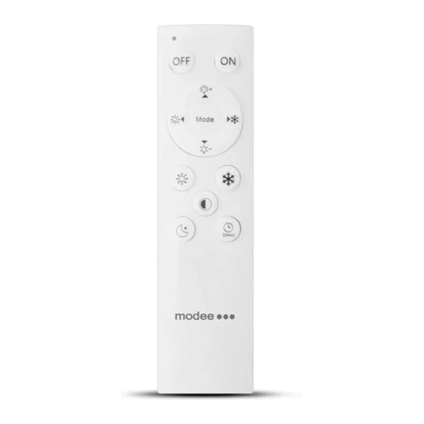 Stropné svietidlo sa dá veľmi jednoducho ovládať pomocou elegantného infračerveného diaľkového ovládača. Stlačením tlačidla môžete pomocou samostatných tlačidiel nastaviť časovač, zapnúť nočný režim a prepínať medzi studenou a teplou teplotou svetla.