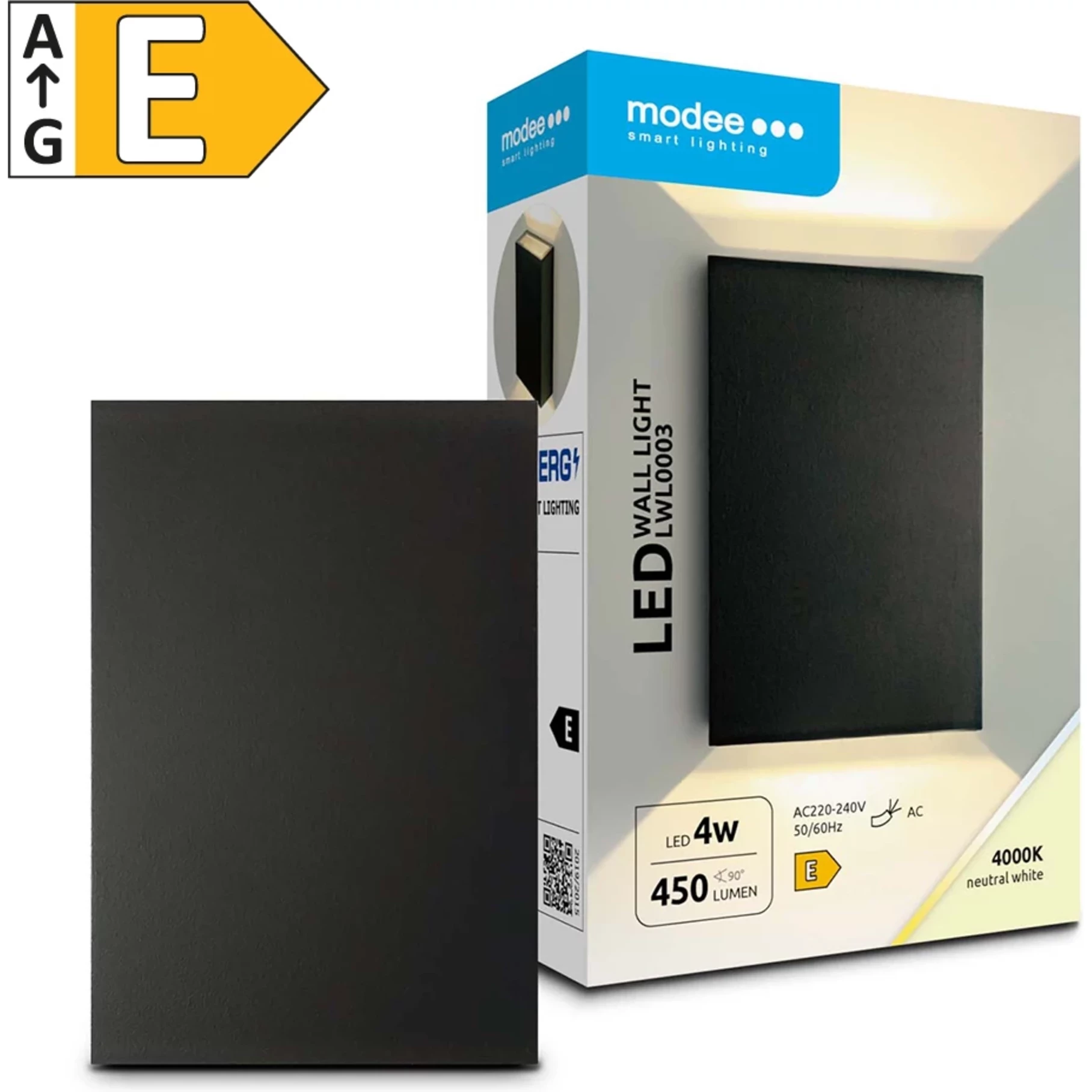 Toto čierne LED nástenné svietidlo spotrebuje 4 W a môže vyžarovať 450 lúmenov svetla pod uhlom 65°. V porovnaní s tým je jeho svetelná účinnosť mimoriadne dobrá, presne 82,5 lumenov/Watt.