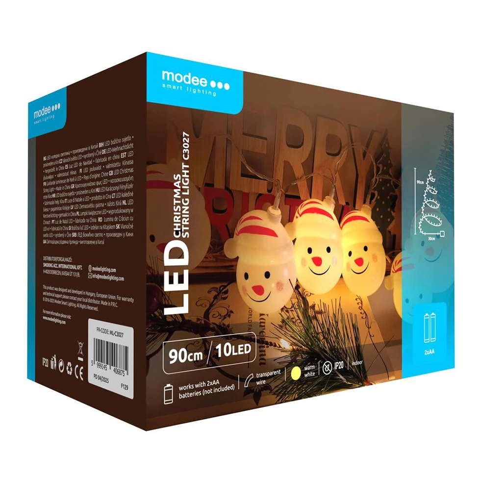 Rozmery sú 120 centimetrov dlhé a má nainštalovaných celkovo 10 LED čipov. Žiarovky v tvare snehovej gule sú umiestnené každých 10 centimetrov. K girlande je 30-centimetrovým káblom pripojený zásobník na batérie, v ktorom môžeme použiť svetelný reťazec umiestnením 2 ceruzkových batérií (AA). Ak do zariadenia vložíme kvalitnú a odolnú verziu batérie tejto veľkosti, vydrží pri nepretržitom používaní až 3 dni.