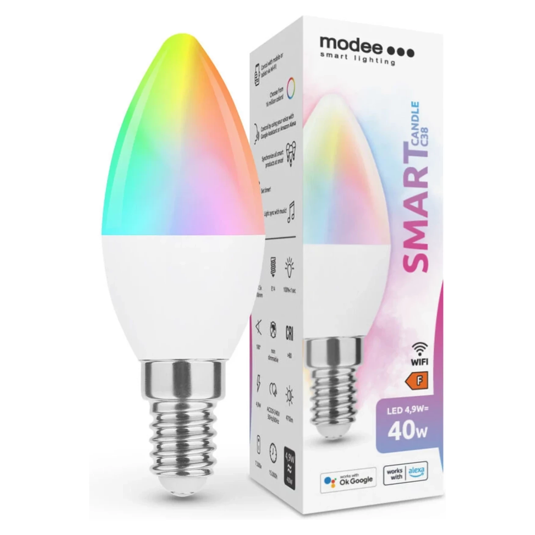 Inteligentná LED žiarovka v tvare sviečky Modee LED Smart Tuya Wi-Fi Candle C38 4,9W E14 180 ° s možnosťou nastaviť farebnú teplotu svetla v širokom rozsahu (2700K-6000K) podľa vykonávanej aktivity. Možno si nastaviť nielen farebnú teplotu ale tiež, ako majú žiarovky vyzerať. Zo 16 miliónov farieb si možno vybrať tú, ktorá Vám najviac vyhovuje.