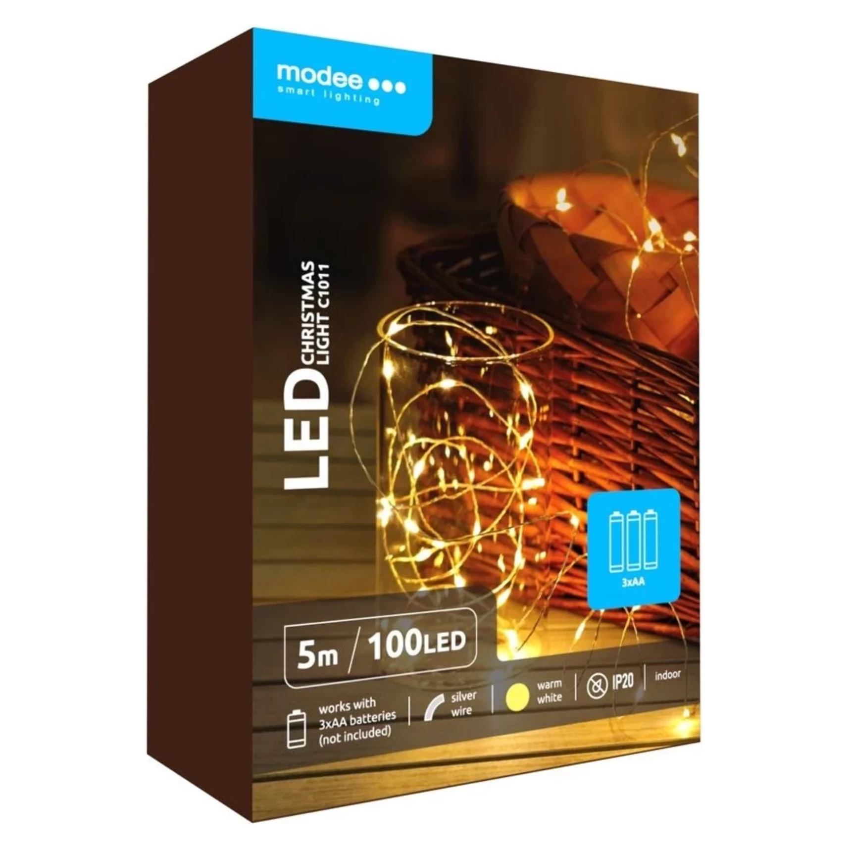 Reťazové LED svetlá Modee Lighting sú úžasným a atmosférickým riešením osvetlenia, ktoré je ideálne pre vnútorné svetelné dekorácie. Odporúčame predovšetkým na vianočné obdobie, no ako náladové osvetlenie dokáže navodiť príjemnú atmosféru v každom ročnom období. Táto girlanda robí prostredie útulným a elegantným svojim podmanivým teplým bielym svetlom a špeciálnym spôsobom osvetlenia.