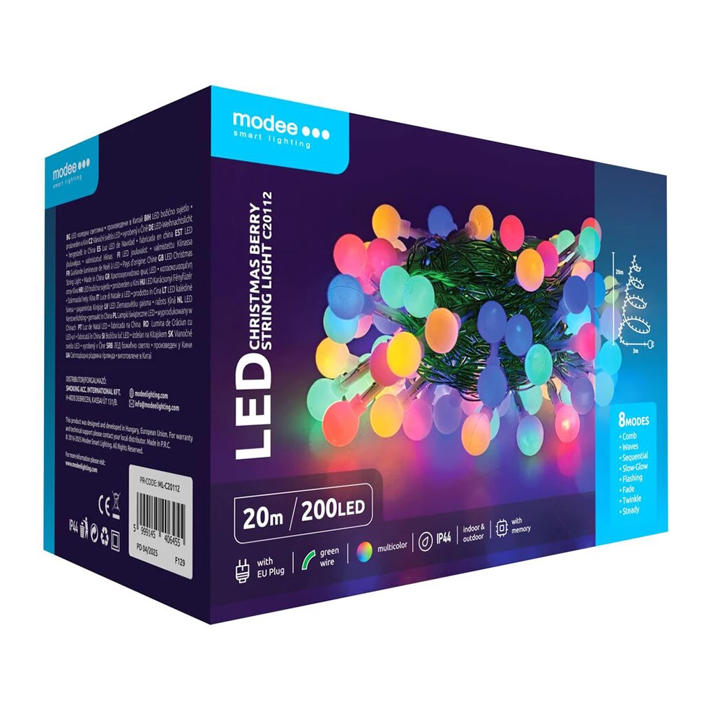 Modee Lighting LED vianočná reťaz 200 LED 20m RGB bobule