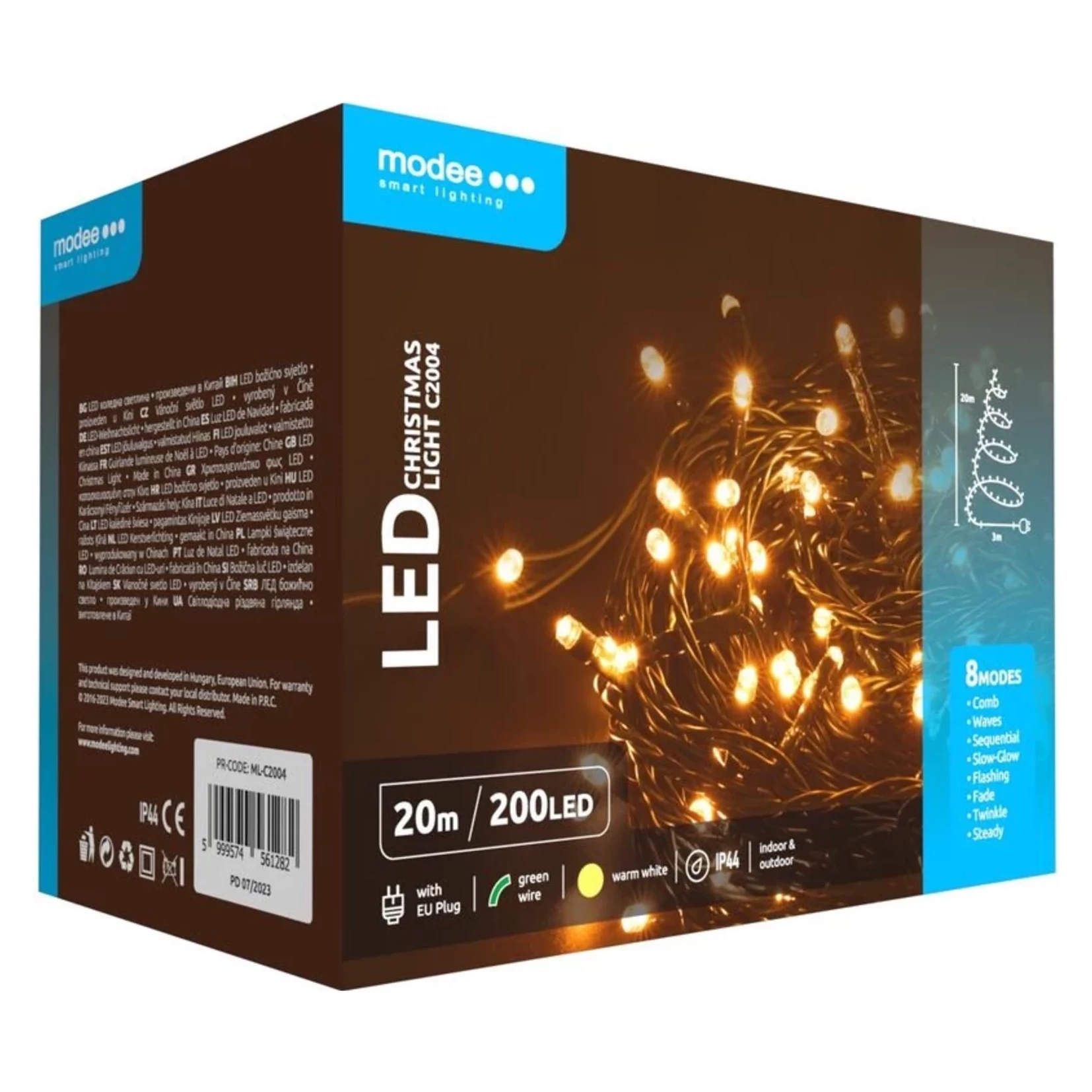 Reťazové LED svetlá Modee Lighting sú úžasným a atmosférickým riešením osvetlenia, ktoré je ideálne pre vonkajšie alebo vnútorné svetelné dekorácie. Odporúčame predovšetkým na vianočné obdobie, no ako náladové osvetlenie dokáže navodiť príjemnú atmosféru v každom ročnom období. Táto girlanda robí prostredie útulným a elegantným svojim podmanivým teplým bielym svetlom a mnohými špeciálnymi režimami osvetlenia.