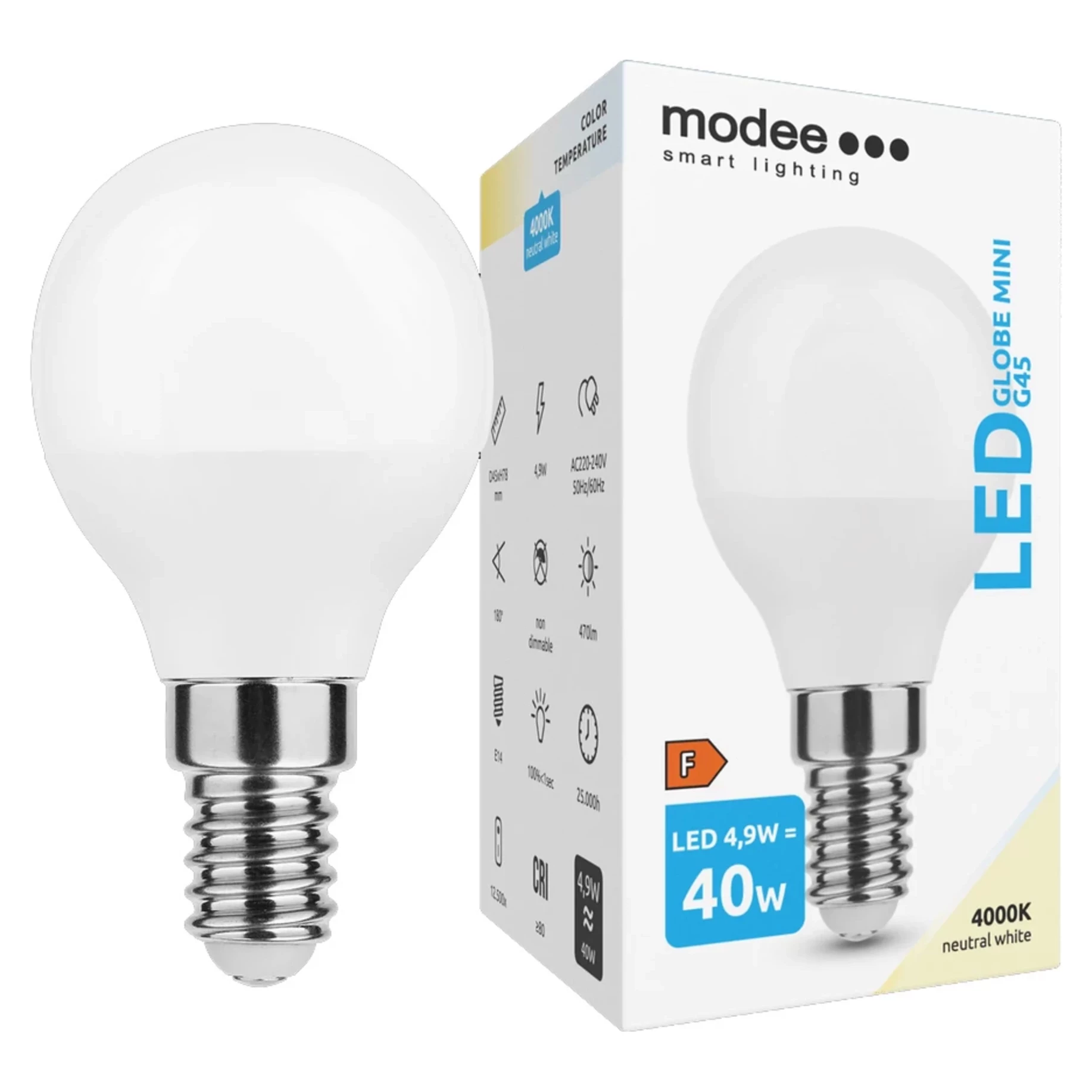 Modee Lighting LED žiarovka E14 4,9W 4000K MINI G45 (40W)