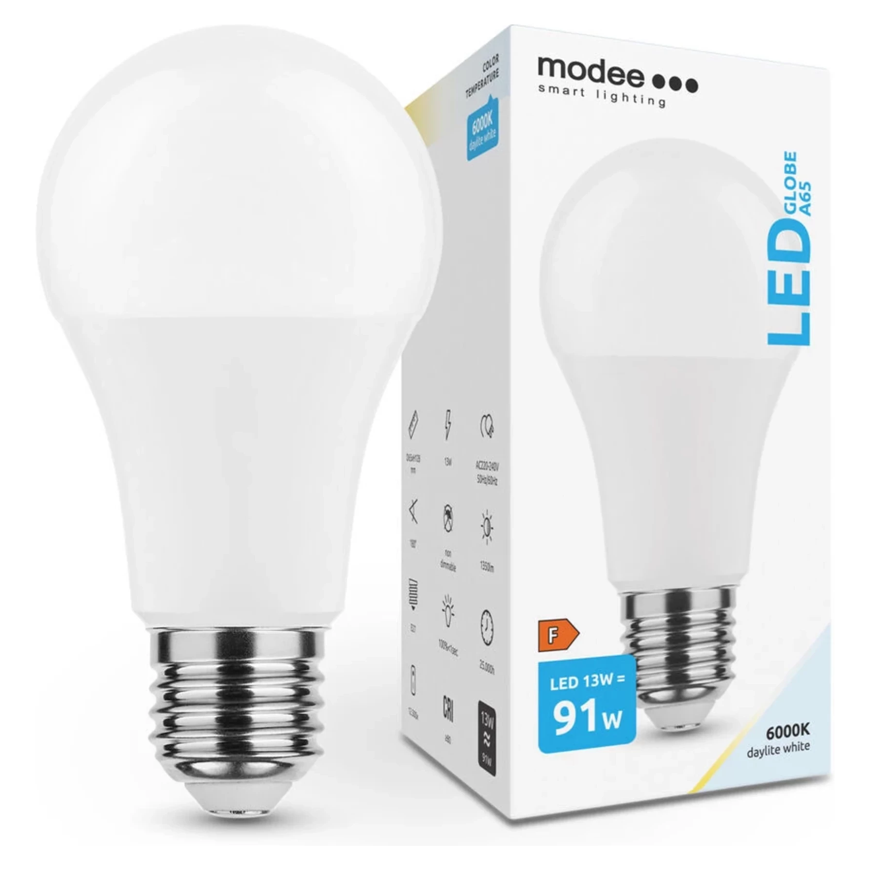 Modee Lighting LED žiarovka so závitom E27 a výkonom 13W. Farba svetla je studená biela a vďaka 270° osvieti celú miestnosť.