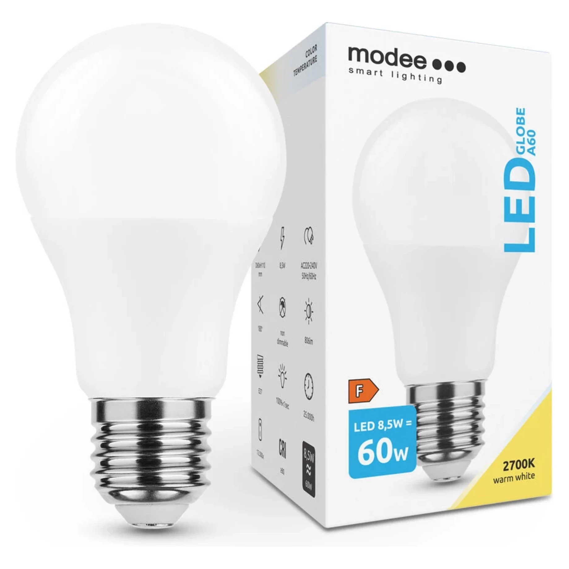 Modee Lighting LED žiarovka E27 8,5W 2700K A60 (60W)