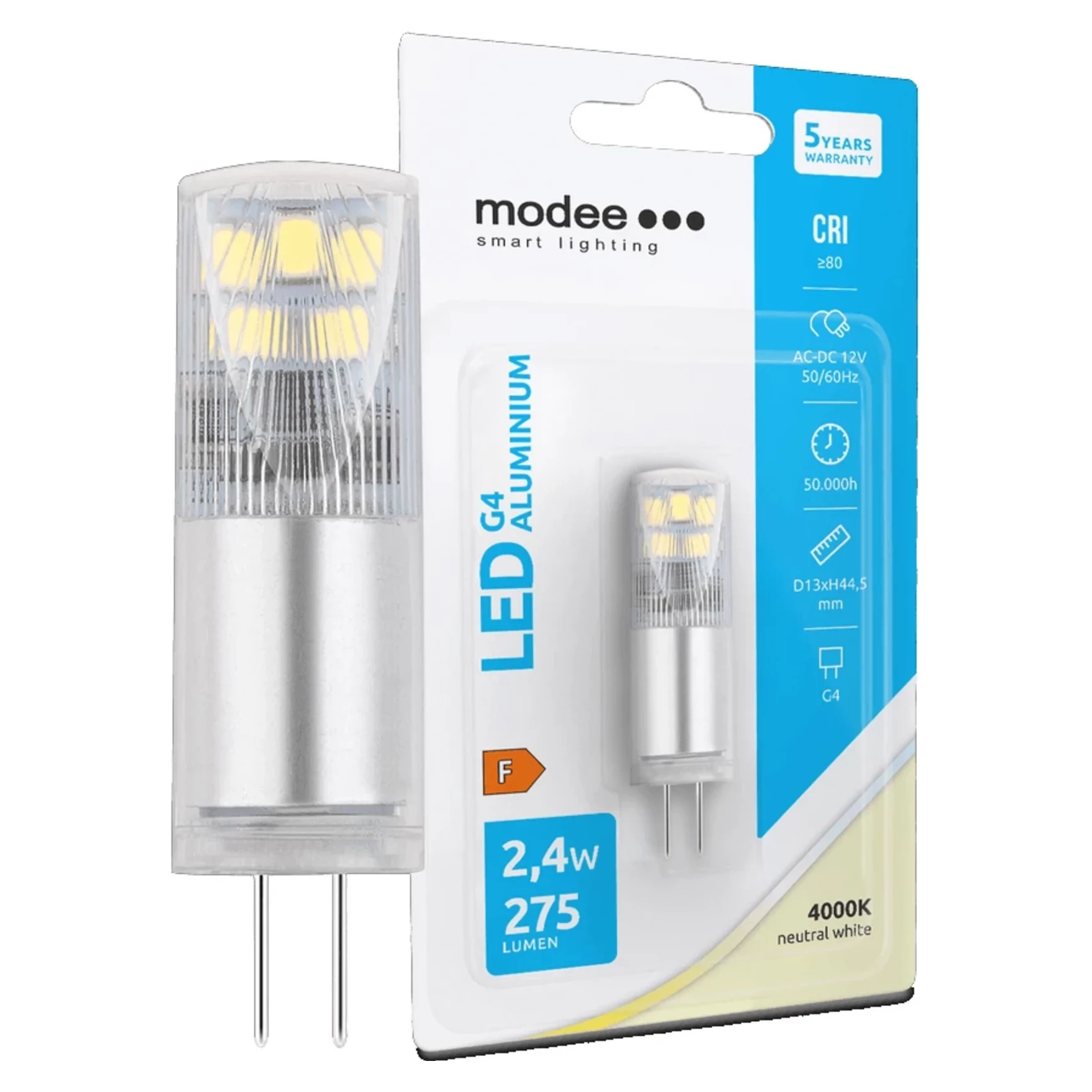 Modee Lighting LED žiarovka G4 hliník AC-DC 12V 2,4W 4000K 275lm