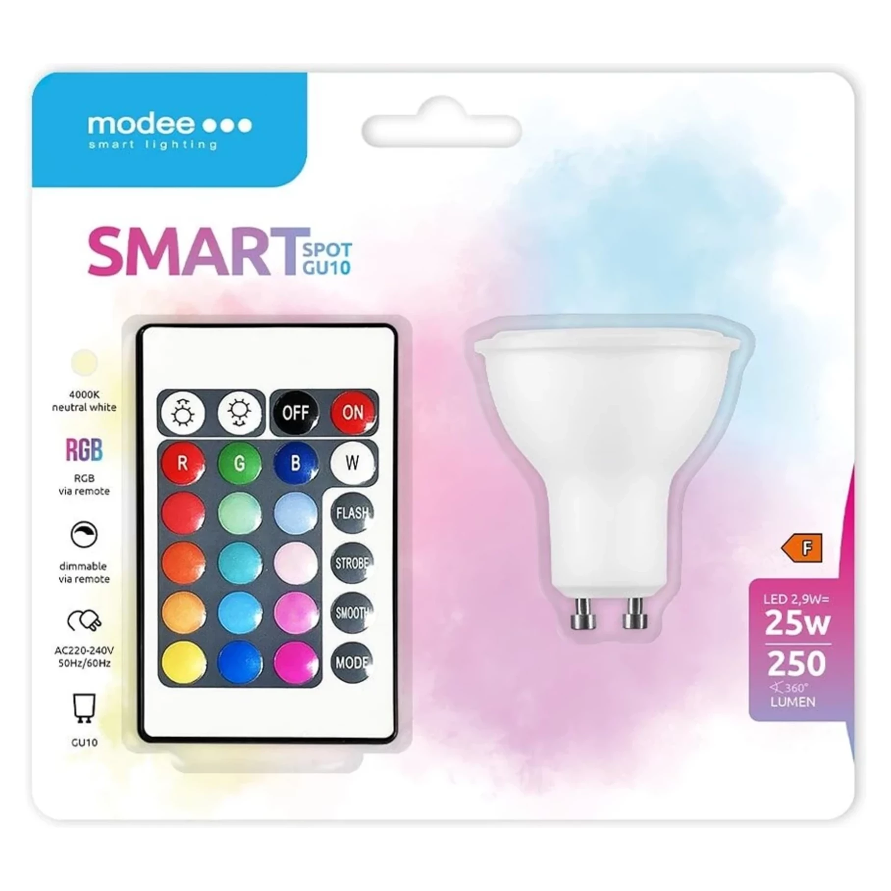 Modee Lighting LED žiarovka GU10 2,9W 4000K RGB + diaľkové ovládanie