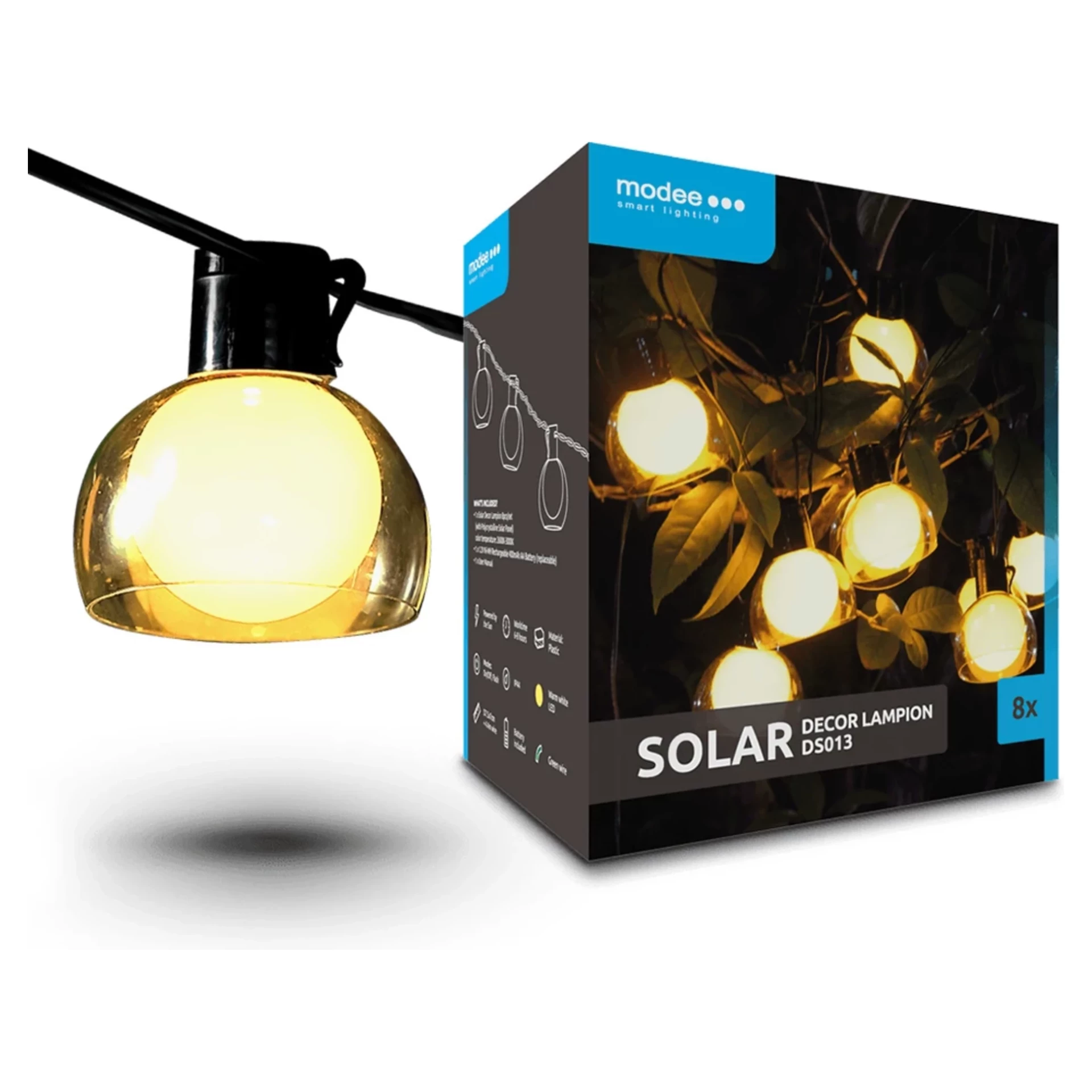 Modee Lighting LED Solar Solar Decor Lampion DS013 je praktické a energeticky úsporné riešenie pre vonkajšie osvetlenie. Tieto lampy počas dňa premieňajú energiu Slnka na zdroj energie v prospech dobíjacej batérie vo vnútri, vďaka čomu sa lampy po zotmení automaticky rozsvietia a osvetlia svoje okolie jemným svetlom. . Je to vynikajúca voľba, ak chcete v noci vytvoriť svetlo okolo plotu alebo záhradného oddychového miesta. Použitie solárnych lámp je ekologickým a praktickým riešením, s ktorým nemusíme strácať čas a energiu na kabeláž.