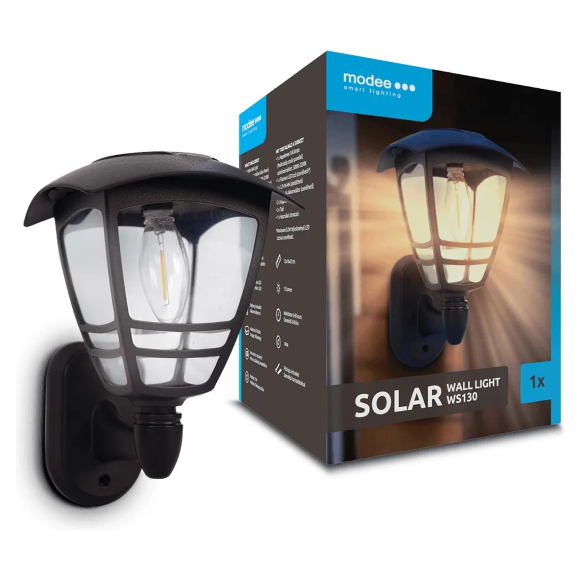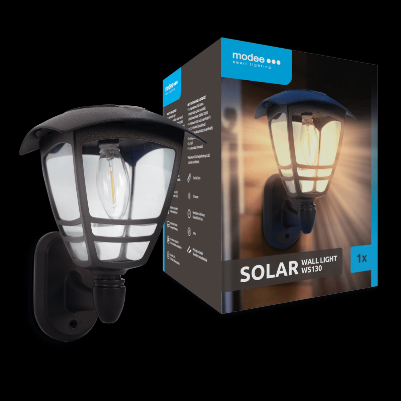 Modee 130 je klasické pouličné svietidlo s elegantným vzhľadom a možno ho namontovať na stenu. Pracuje s kúskom polykryštalického solárneho panelu, ktorý sa cez deň pod vplyvom slnečného žiarenia nabíja, čím môže Filament LED žiarovka vo vnútri svietiť svetelným tokom 3 lúmeny až 8 hodín v noci. Ich farebná teplota je 2800K-3200K, t.j. vyžarujú príjemné teplé biele svetlo.