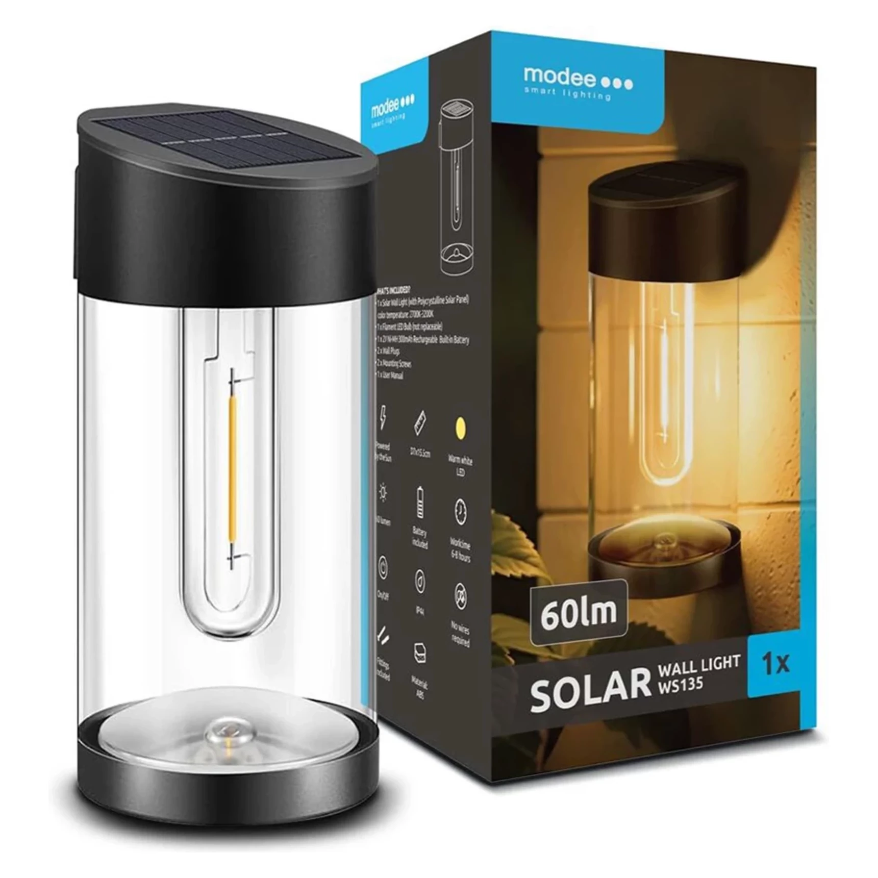 Modee WS135 je malé nástenné solárne svetlo, ktoré vďaka svojmu jedinečnému vzoru a dizajnu určite upúta pozornosť každého! Funguje s polykryštalickým solárnym panelom, ktorý sa počas dňa nabíja slnečným žiarením, a preto môže svietiť až 8 hodín.