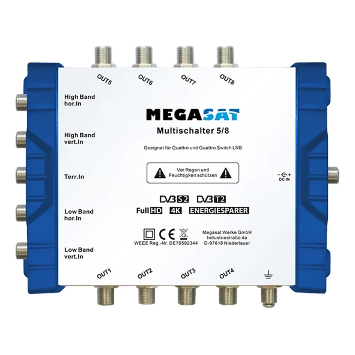 Multiprepínače od spoločnosti Megasat Vám umožnia rozšíriť Vašu satelitnú inštaláciu. Pri tomto multiprepínači je možné sledovať satelitné vysielanie z jednej družice až na 8 prijímačoch. Tiež je možné k satelitnému príjmu pripojiť aj DVB-T/T2 vysielanie. Najnovšie technológie použité pri výrobePokračovať