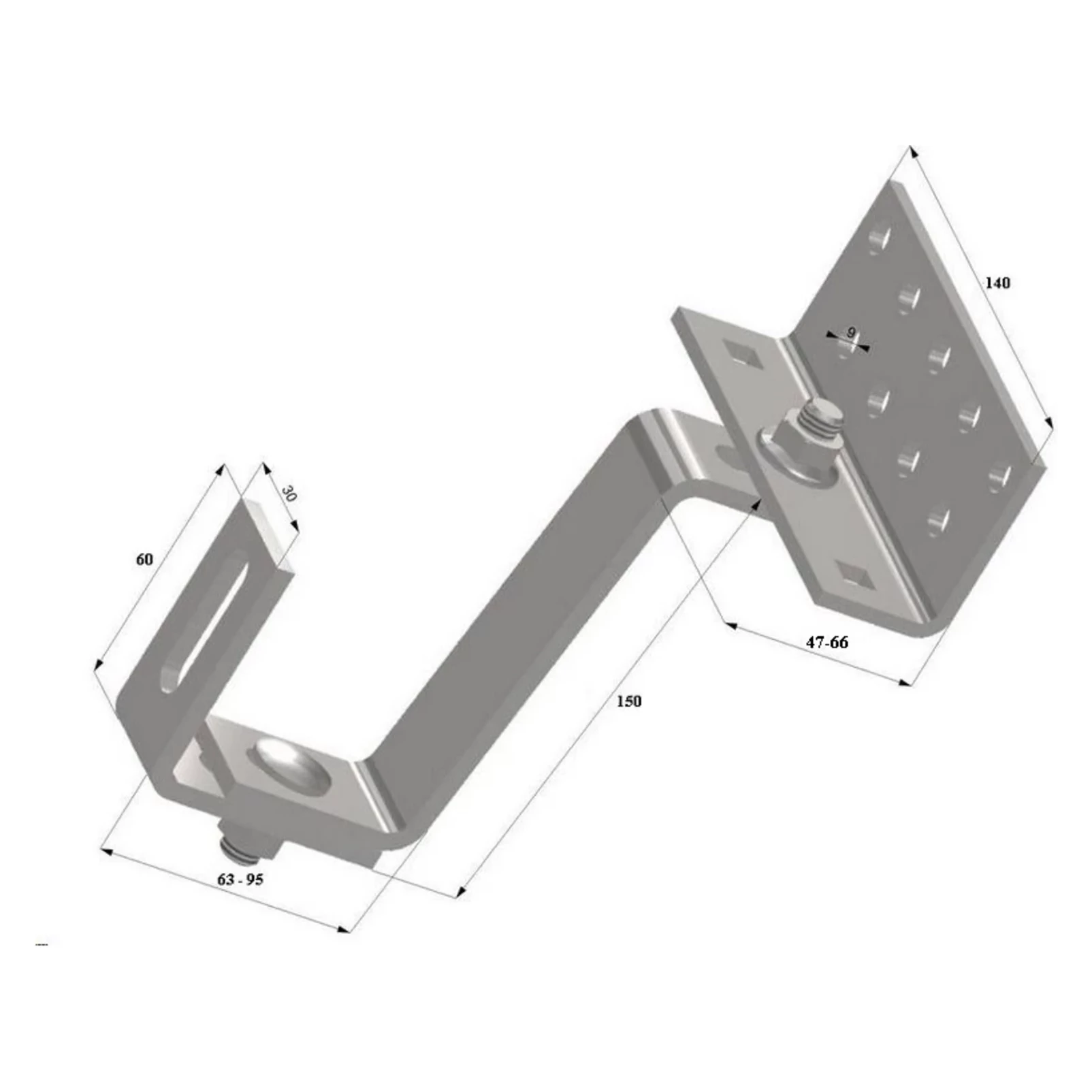 Nastaviteľný strešný montážny držiak pre fotovoltaické panely na šikmé strechy pokryté keramickými alebo betónovými škridlami. Vďaka možnosti nastavenia je ho možné použiť takmer na všetkých typoch striech s touto krytinou.