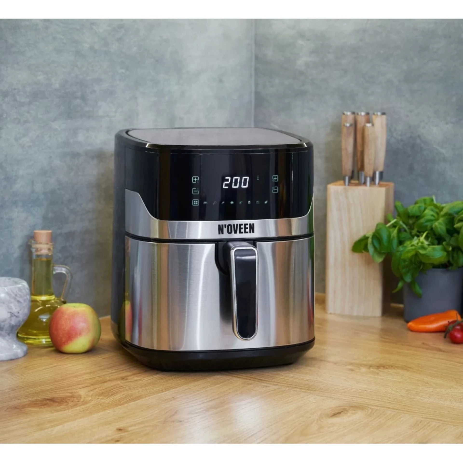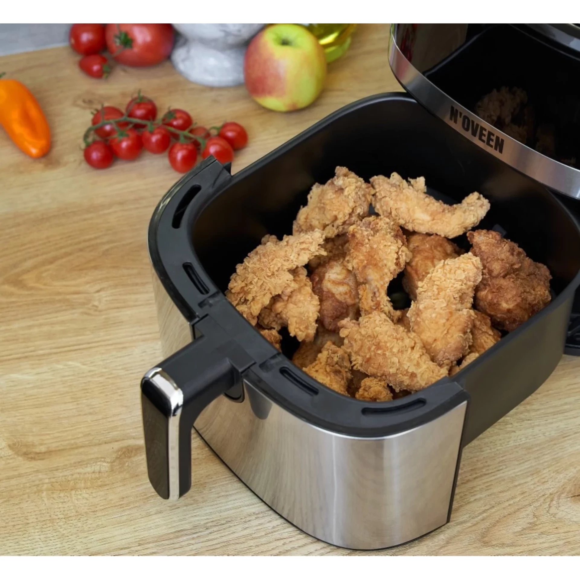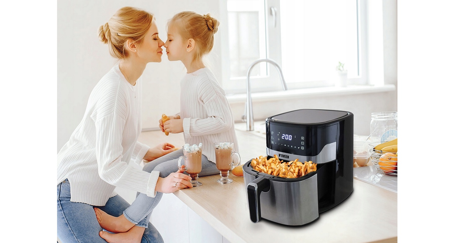So vzduchovou fritézou AF550 nemusí byť zdravé varenie zložité a namáhavé! Prístroj má na výber 8 automatických programov – pečenie: mäso (steak), kuracie mäso, ryby, morské plody, hranolky, zelenina, koláče a pizza. S fritézou NOVEEN Air Fryer je príprava chutných a nízkokalorických jedál potešením. Prístroj je vybavený systémom ohrevu RAPID AIR a teflónovým povrchom misky, ktorý zabraňuje prilepeniu a uľahčuje čistenie. Pečte zdravo a bez tuku pre celú rodinu!