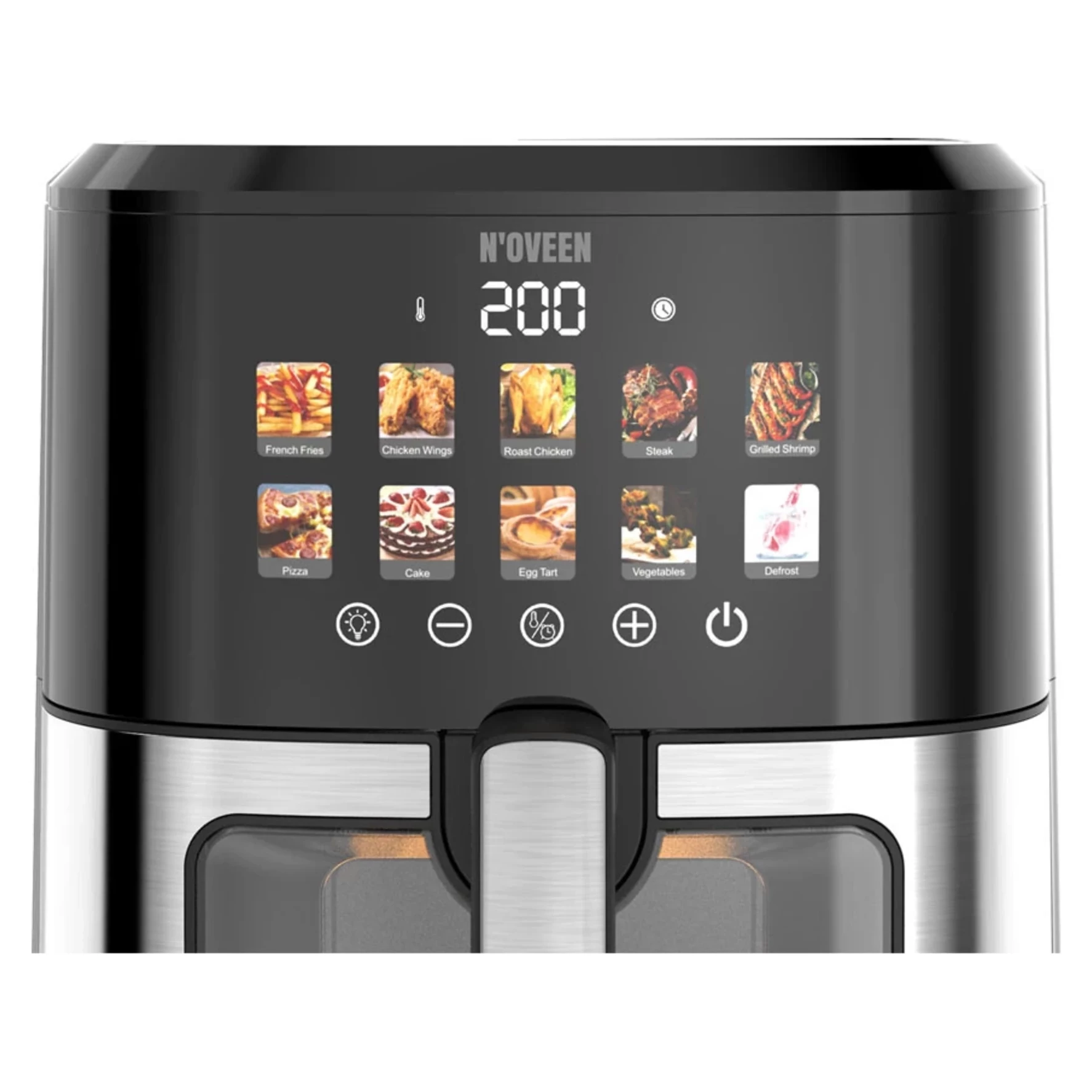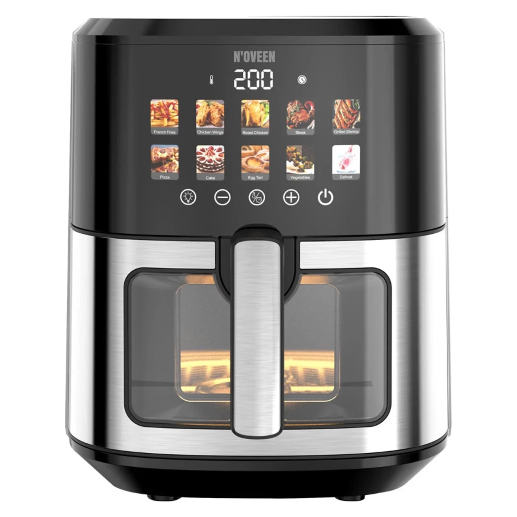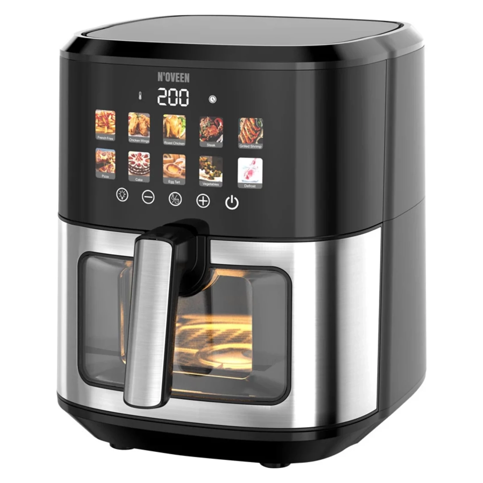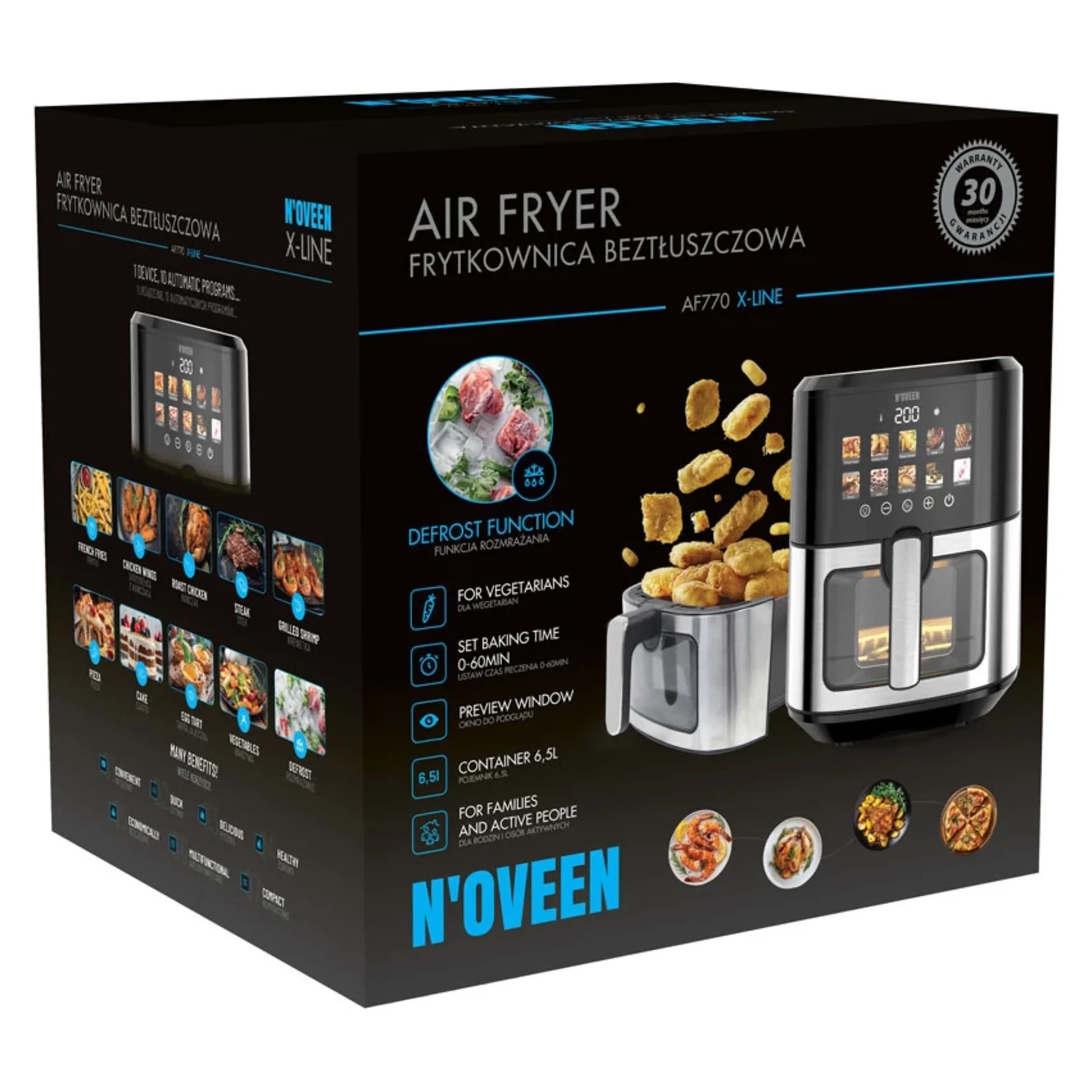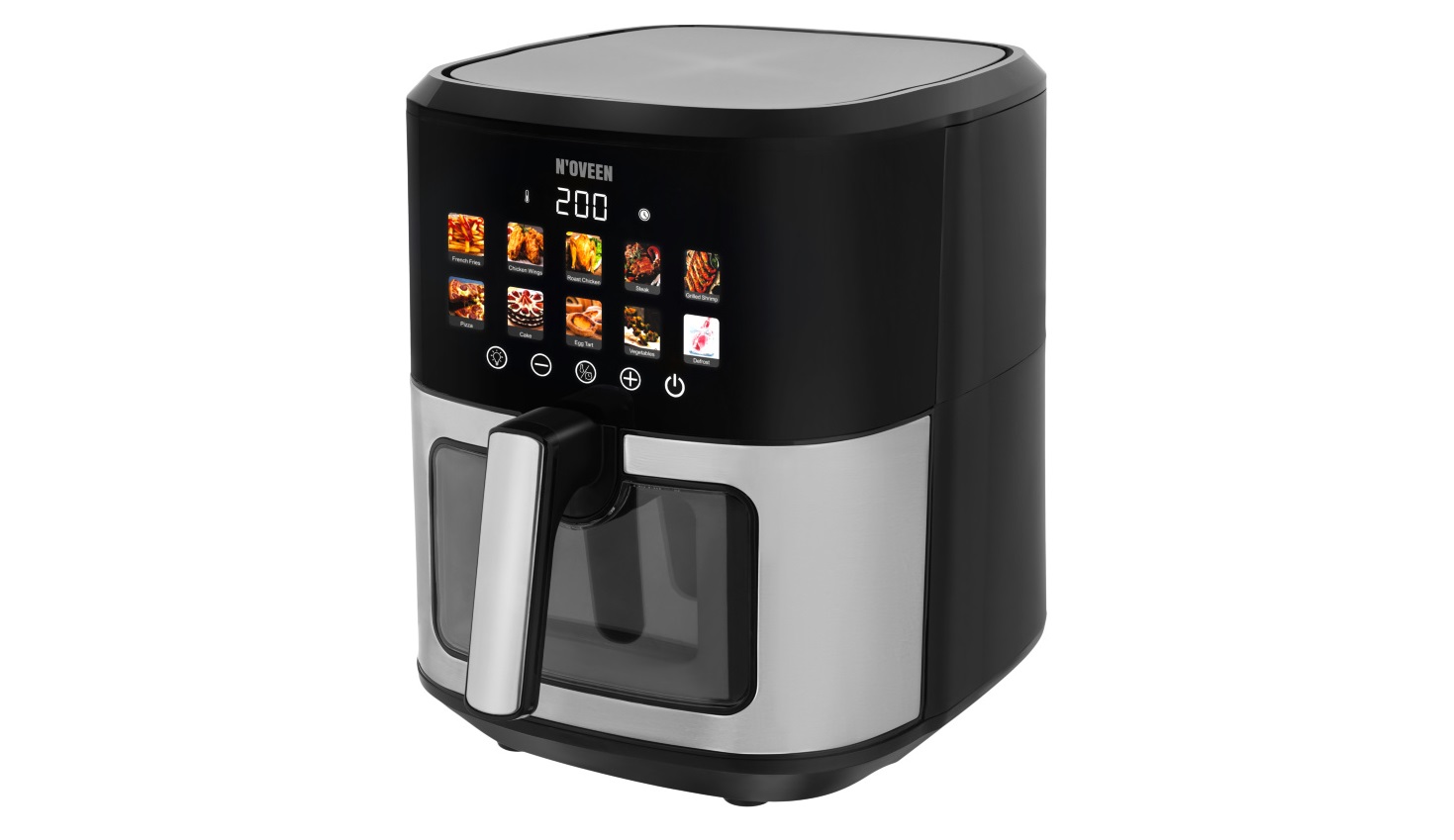 S fritézou bez tuku NOVEEN AF770 X-LINE s farebným dotykovým panelom posuniete svoje zážitky z varenia na novú úroveň. Tento spotrebič navrhnutý s ohľadom na zdravý životný štýl vám umožní pripraviť chutné a chrumkavé jedlo s minimálnym množstvom tuku.