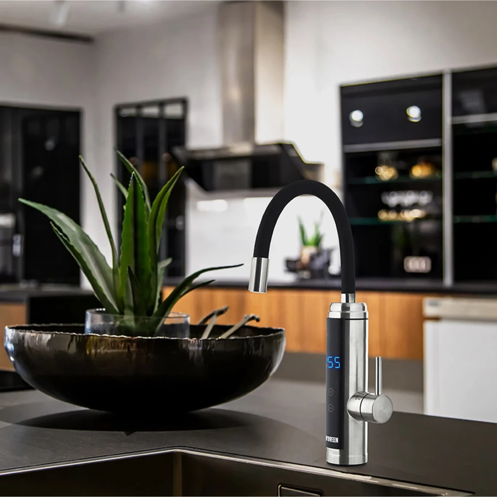 Prietokový ohrievač vody IWH955 šetrí čas, energiu a vodu. Výrazne zlepšuje komfort v miestnostiach, kde nie je teplá voda distribuovaná priamo z inštalácie, napr. garáž, dielňa, pivnica, letný dom, kemping alebo kuchyňa. Model IWH955 je určený na inštaláciu na dosku stola alebo umývadlo a má flexibilný výtok, ktorý uľahčuje umývanie. Telo batérie je vyrobené z nehrdzavejúcej ocele INOX.