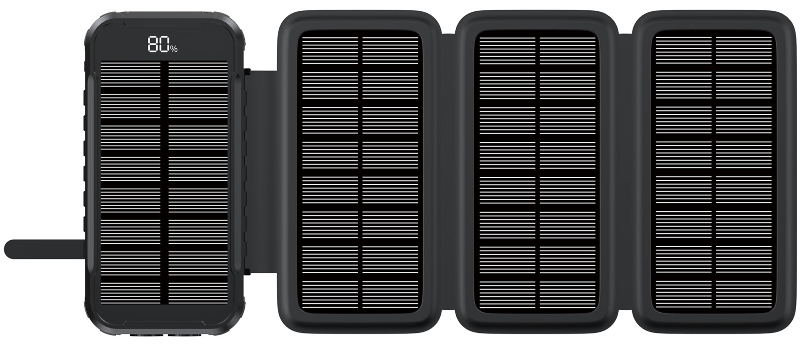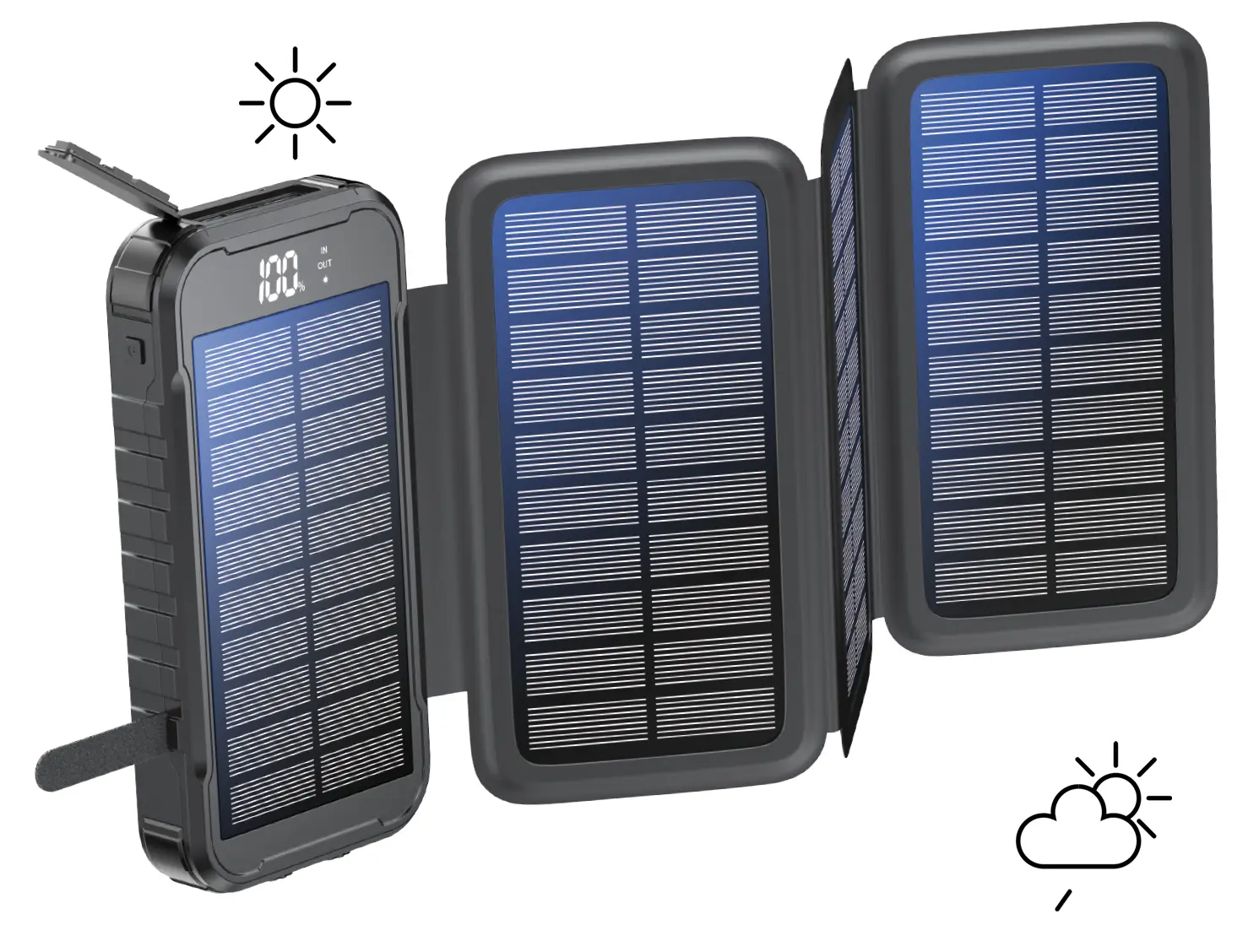 Táto powerbanka sa vyznačuje špičkovou solárnou technológiou. Je vybavená štyrmi rozkladacími solárnymi panelmi, vďaka ktorým môžete využiť silu slnka na dobíjanie svojich zariadení. Táto funkcia je nielen ekologická, ale aj neuveriteľne užitočná v situáciách, keď nie sú k dispozícii tradičné zdroje nabíjania. Solárne panely sú navrhnuté tak, aby účinne zachytávali slnečné svetlo a premieňali ho na využiteľnú energiu, čím vám poskytnú spoľahlivý zdroj energie aj na odľahlých miestach.