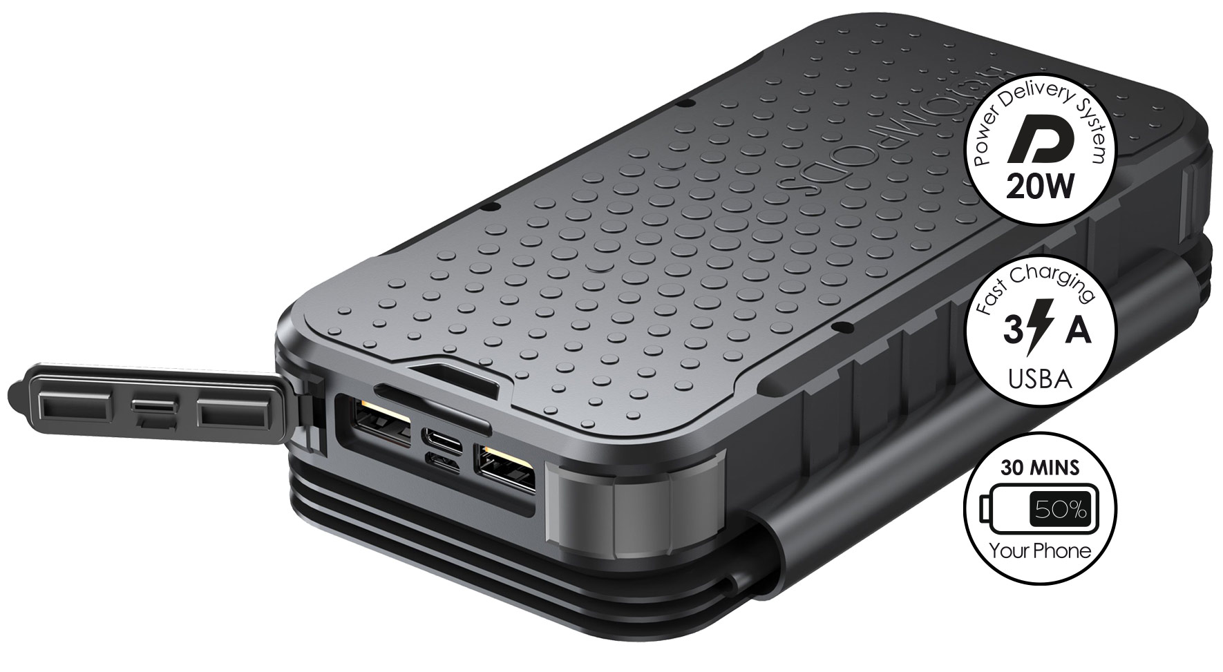 Neutron-Fold je pokročilá powerbanka. Je vybavená 20W USB-C Power Delivery (PD) a je určená na bleskové nabíjanie vrátane zariadení Apple. Napájajte svoj iPhone, iPad alebo akékoľvek iné kompatibilné zariadenie rýchlo a efektívne. Zahrnutie dvoch portov Quick Charge USB-A ešte viac zvyšuje všestrannosť a umožňuje nabíjať viacero zariadení súčasne. Vďaka podpore rýchleho nabíjania PD Apple sa táto powerbanka postará o to, aby ste nikdy nepremeškali žiadnu akciu a udržali svoje zariadenia pripravené na akciu, nech ste kdekoľvek. Zostaňte plní energie vďaka dokonalej kombinácii rýchlosti a pohodlia.