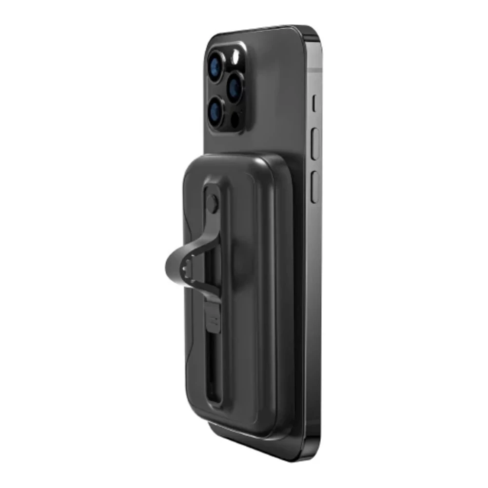 Pripojte sa k svetu MagSafe, najnovšej technológii pre bezpečné nabíjanie na cestách bez káblov. MagClix je tenká, prenosná a výkonná powerbanka s kapacitou 5000 mAh, ktorá sa magneticky prichytí k zadnej strane iPhonu. Integrovaný silikónový remienok sa dá uvoľniť, aby ste powerbanku mohli uchopiť prstom počas používania telefónu. Pútko na prst môže slúžiť aj ako stolový stojan.