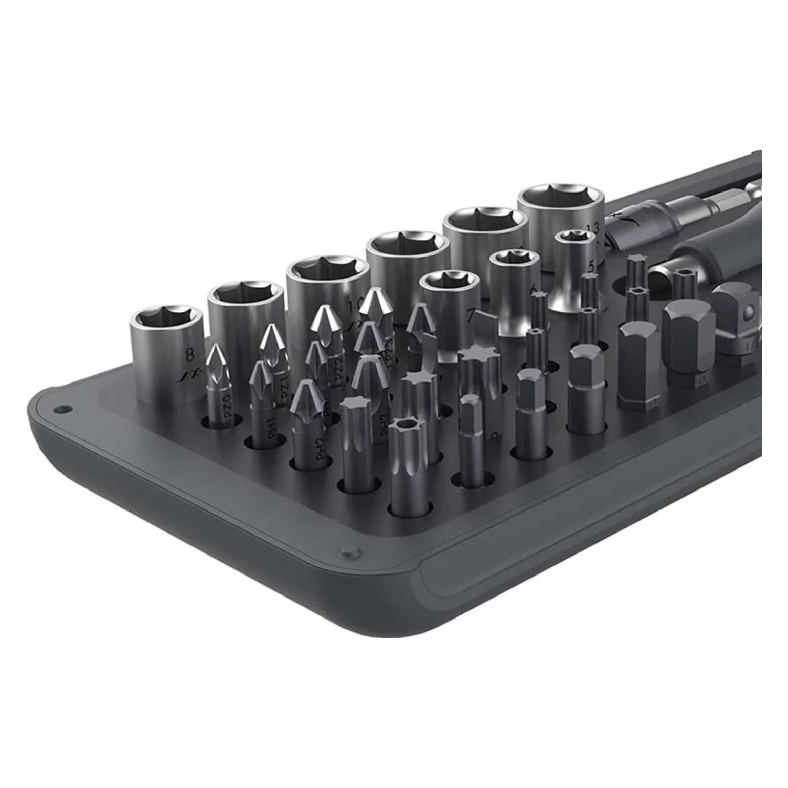 V sade nájdete 28 funkčných bitov, 9 šesťhranných klúčov, adaptér, račňový kľúč, nadstavec a rukoväť, ktorá pasuje na všetky diely. Vďaka tomu je náradie ideálne na výmenu bicyklových kolies, demontáž rôznych dielov, servisné opravy alebo kutilov. Spravujte konfiguráciu skrutkovača voľne a magnetická objímka zaistí pevné usadenie hrotu a poskytne stabilitu celej konštrukcii.