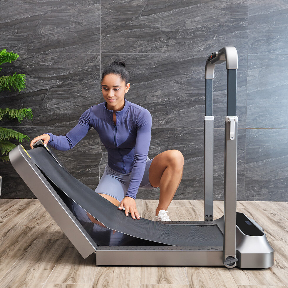 WalkingPad R2 je v porovnaní s bežným bežeckým pásom neporovnateľne menší. V zloženom stave nezaberie ani pol metra, takže je vhodný pre domácnosti s obmedzeným priestorom.