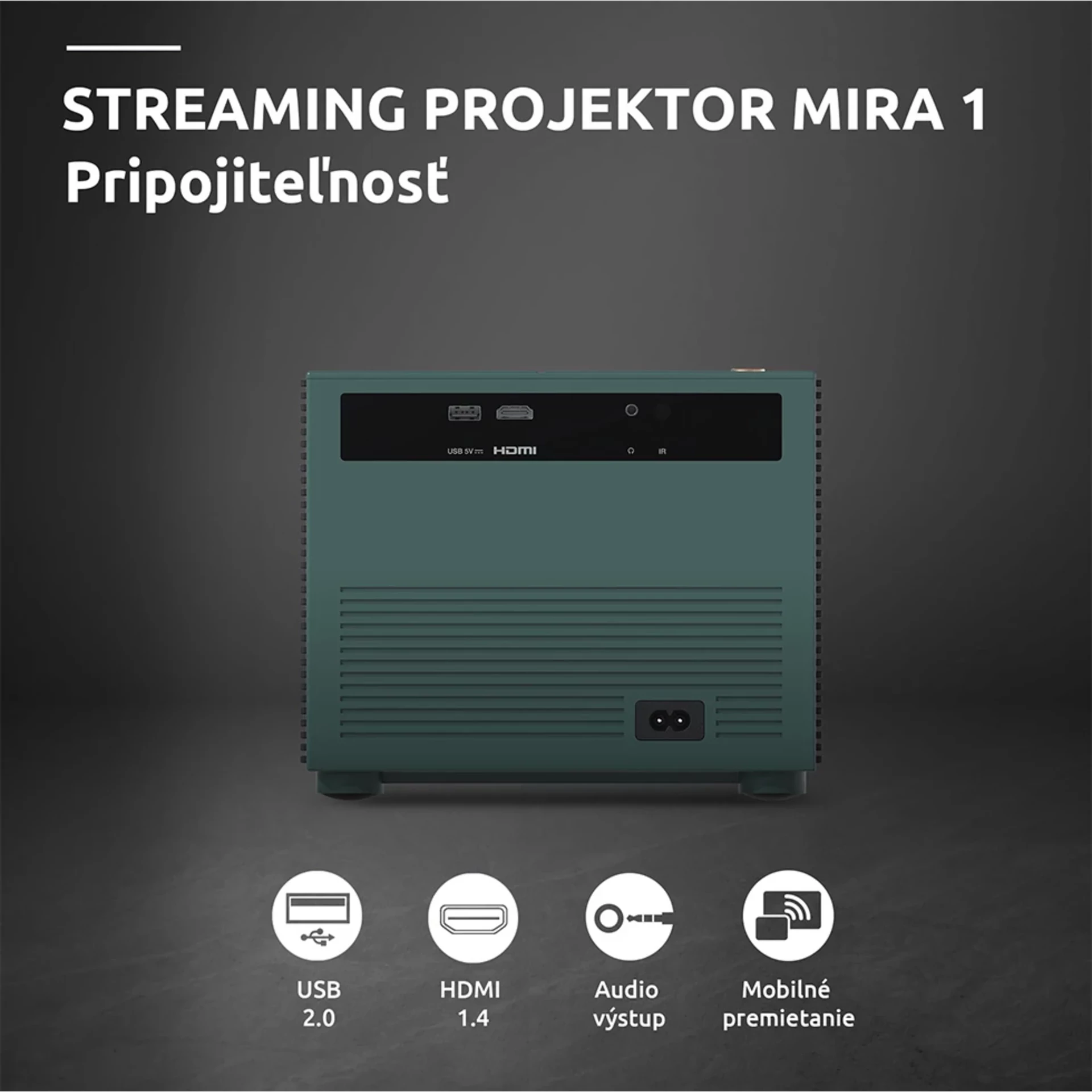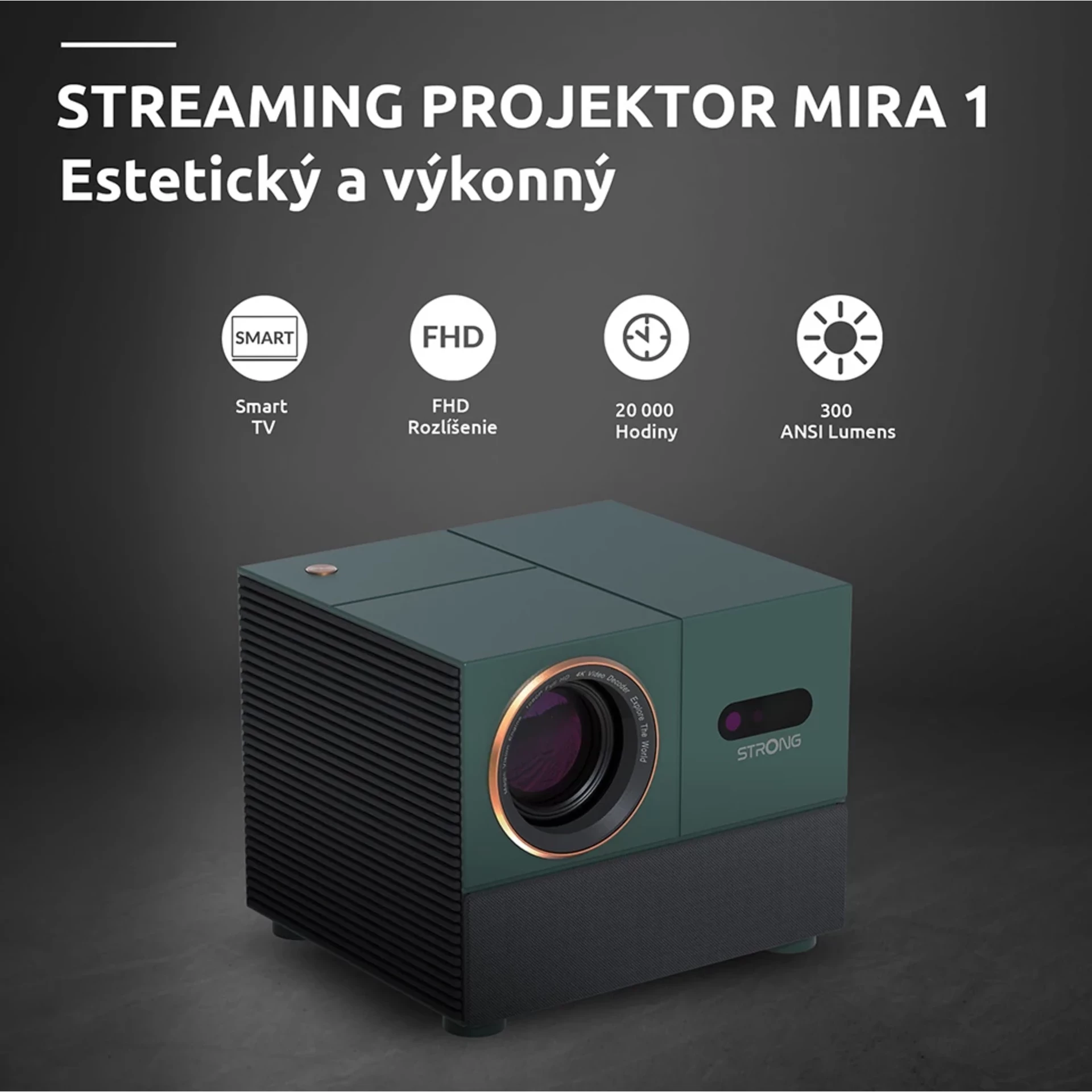 Predstavujeme MIRA 1 od spoločnosti STRONG, elegantný a všestranný videoprojektor navrhnutý tak, aby svojou elegantnou borovicovo-zelenou povrchovou úpravou skrášlil každú miestnosť. Projektor MIRA 1 je vybavený softvérom Google TV, ktorý poskytuje bezproblémový prístup ku všetkým obľúbeným platformám na streamovanie hneď po vybalení. S pôsobivým jasom 300 ANSI lúmenov premieta obrazovku s veľkosťou od 40″ do 150″ palcov, pričom ponúka ostrý obraz a živé farby. Projektor MIRA 1 je ideálny na premietanie filmov alebo prezentácií, spája v sebe funkčnosť a štýl, takže je dokonalým doplnkom každého moderného priestoru.Pokračovať