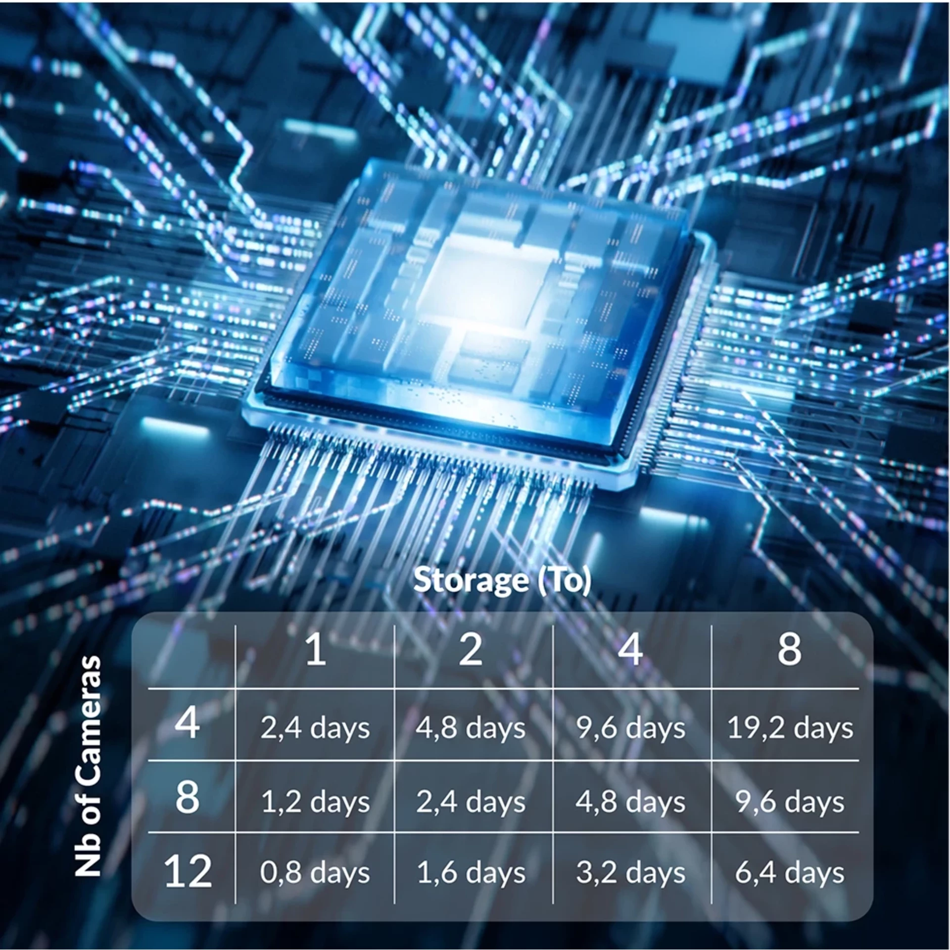 Pridajte až 4 kamery priamo pomocou 4 PoE portov, čím zaistíte bezproblémovú integráciu kamier do vášho systému. Navyše jednoducho integrujte IP kamery naprieč segmentmi IP pre rozšírené pokrytie a komplexné monitorovanie. Zachyťte každý detail v ohromujúcom rozlíšení 4K a vychutnajte si pohodlné prehrávanie prostredníctvom cloudového úložiska. Rozšírte svoje úložisko až o 8TB HDD a vychutnajte si záznamy v 4K rozlíšení. Vďaka kompresii H.265+ dosiahnete úsporu miesta bez zníženia kvality.