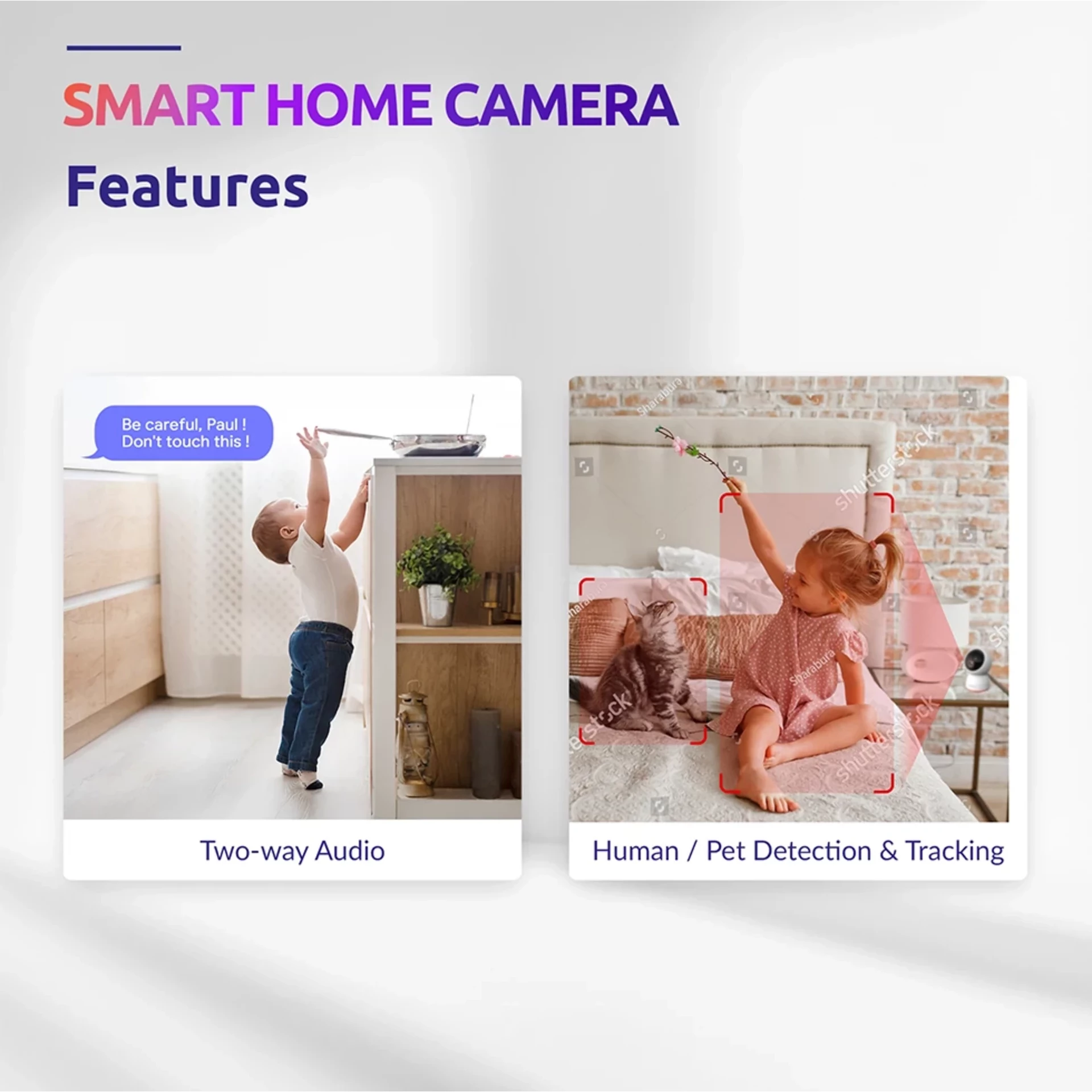Predstavujeme naše bezpečnostné riešenie pre obytné budovy, Smart Home Kamru. Je navrhnutá tak, aby zabezpečila bezpečnosť vášho domova alebo firmy, a môže sa pochváliť pôsobivým radom finkcií, ktoré zabezpečia komplexný dohľad a bezproblémovú kontrolu. Jej 360° možnosť otočenie zabezpečí kompletné pokrytie, zatiaľ čo inteligentná detekcia pohybu a ľudí odfiltruje falošné poplachy. Vďaka IR nočnému videniu budete mať dokonalý prehľad aj počas nočných hodín. Pomocou aplikácie a dvojcestnému zvuku môžete zabezpečiť obojsmernú komunikáciu.